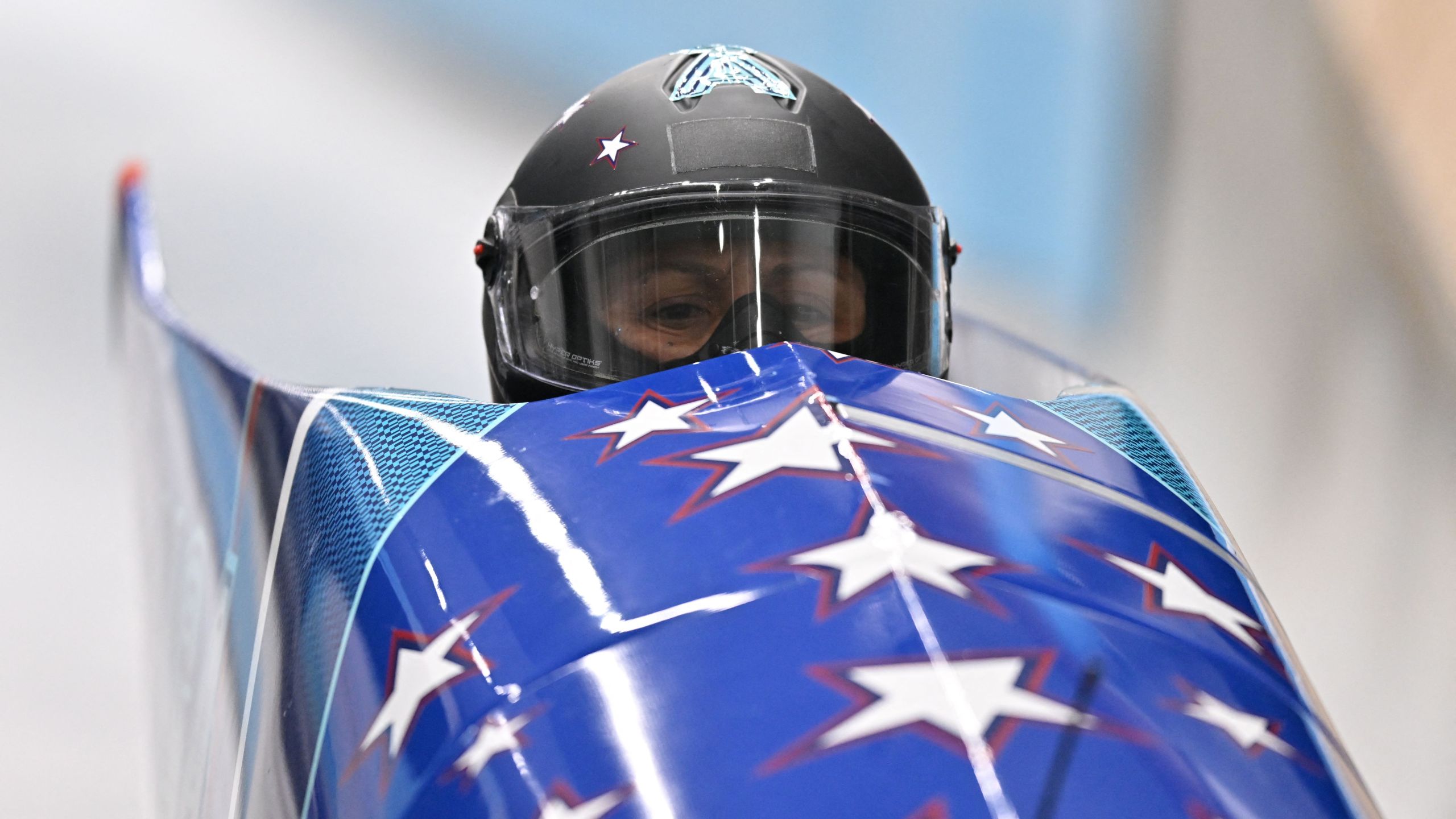 Team USA’s Elana Meyers Taylor and pusher Sylvia Hoffman blazed through two ‘tremendous’ two-woman heats for third standing. Said Meyers Taylor: ‘We’re gonna go after it and attack tomorrow.’