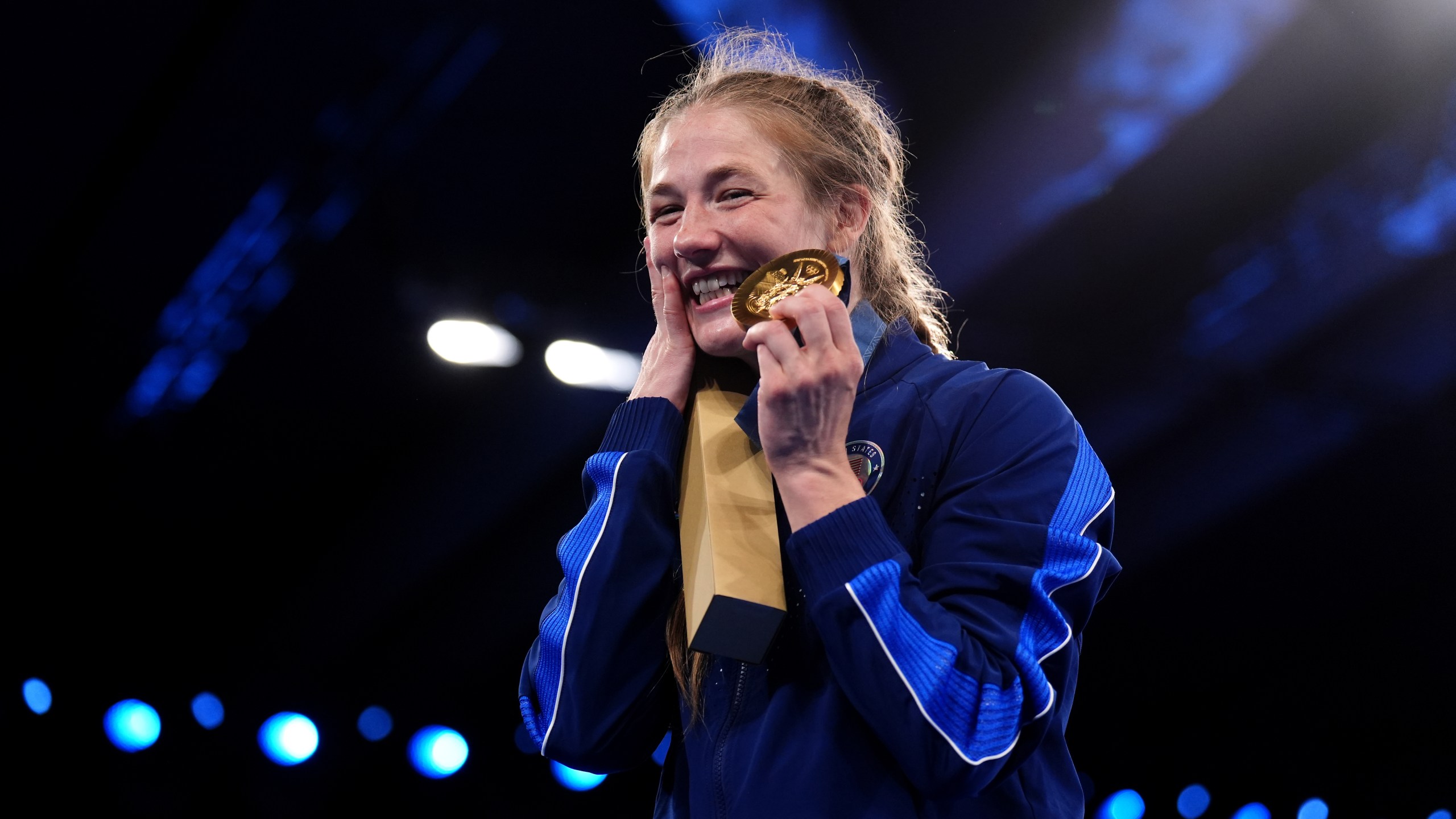 See Team USA’s Sarah Hildebrandt win 50kg wrestling gold in the video player above.