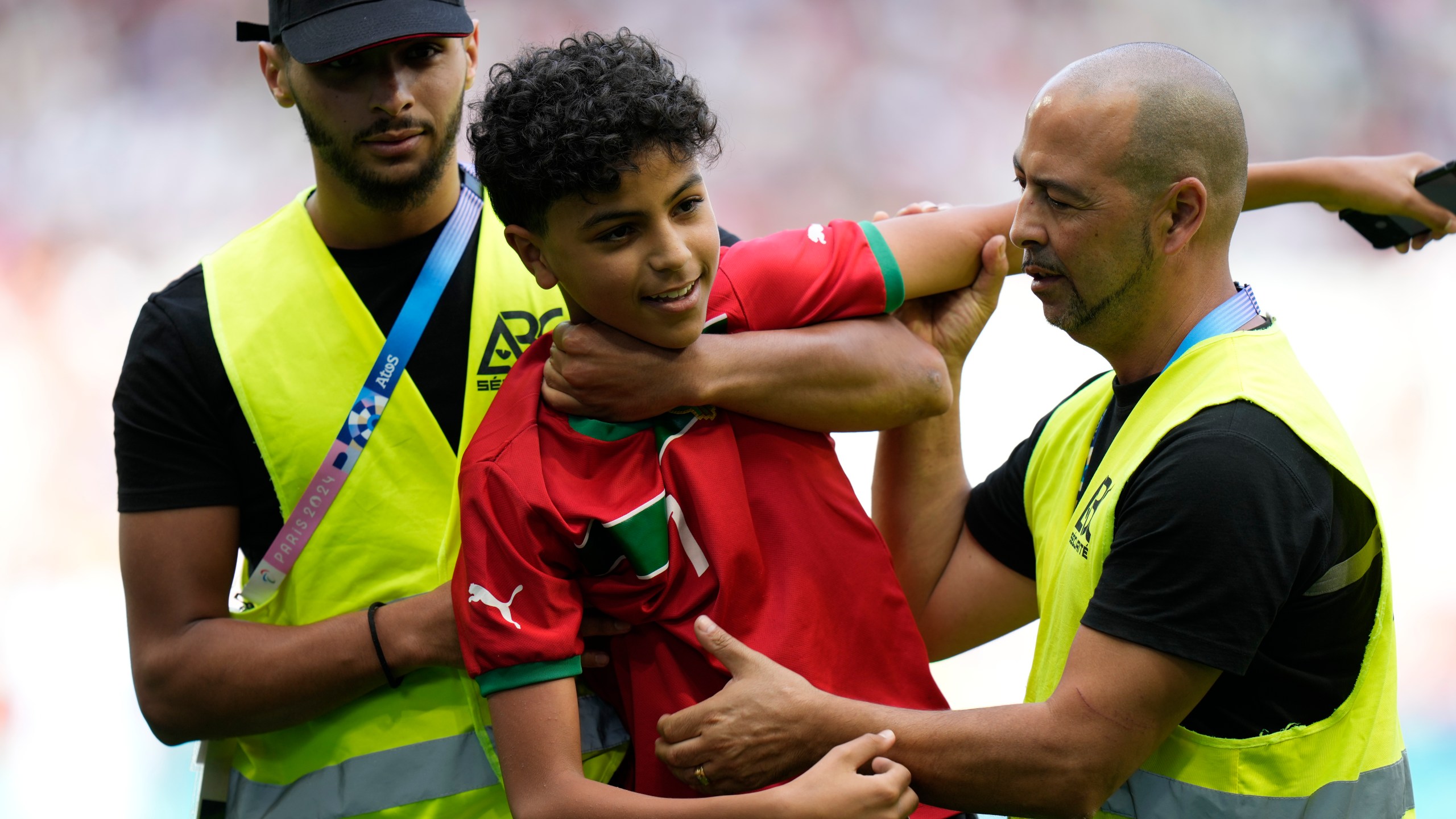 Objects were thrown and invading Morocco fans were tackled by security on the field at Stade Geoffroy-Guichard in Saint-Etienne after Argentina tied it 2-2 with a goal from Cristian Medina the 16th minute of added time.