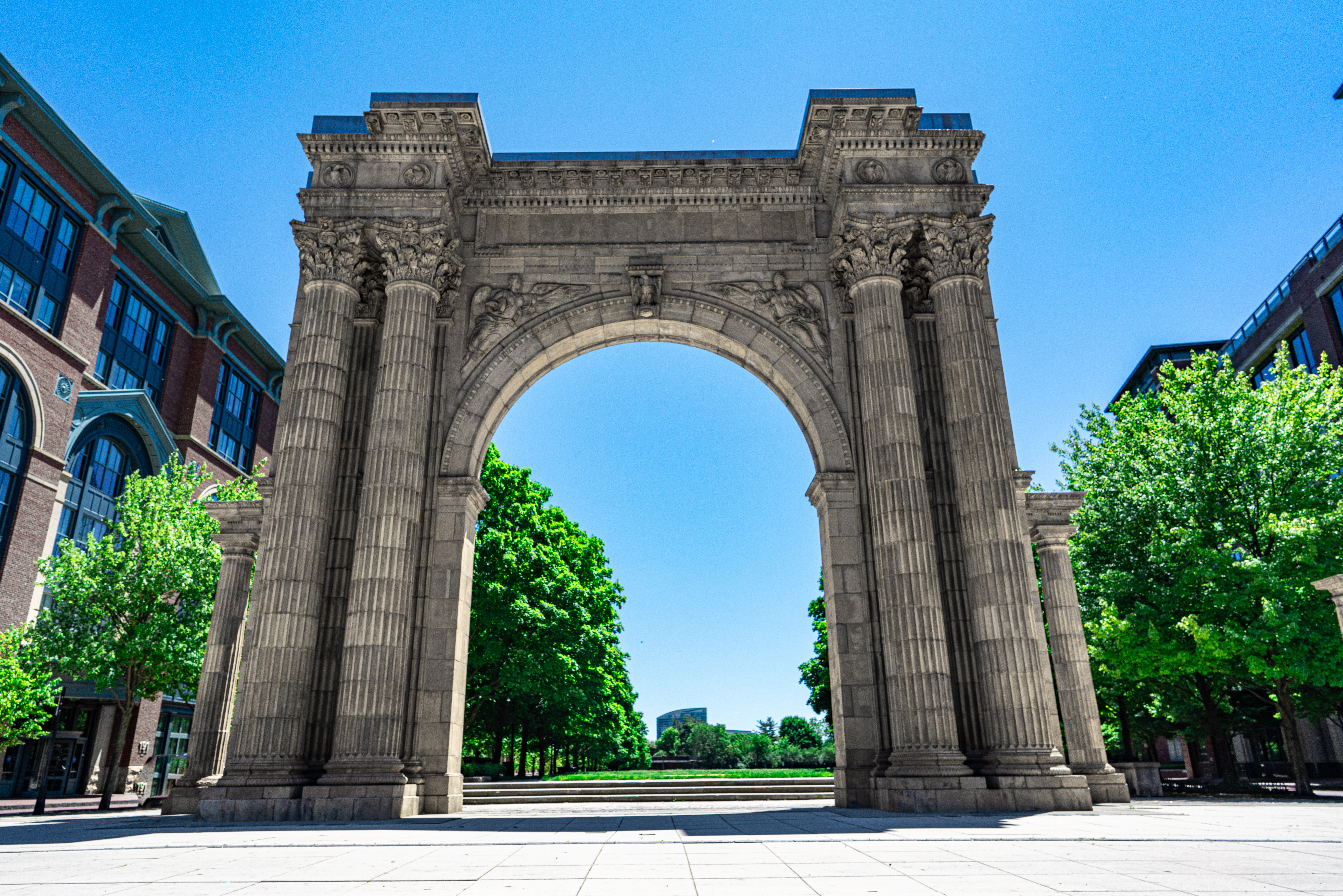 McFerson Commons (Arch Park): The arch at McFerson Commons Park is the last remaining piece of the old Columbus Union Station, which was demolished in 1979. The arch’s classical architecture, with its elegant and imposing structure, is reminiscent of Parisian monuments such as the Arc de Triomphe or the various decorative arches scattered throughout Paris.