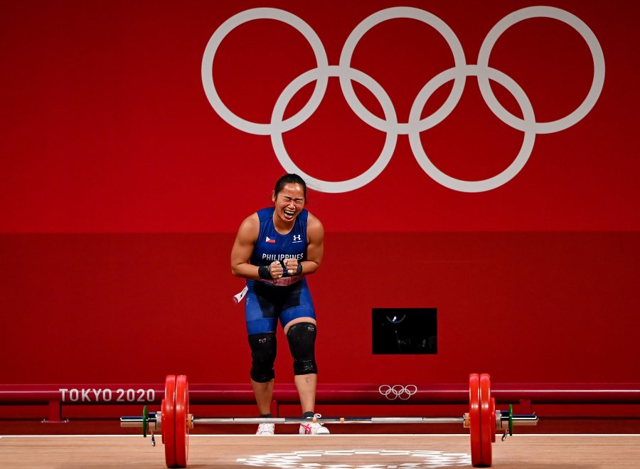 Athletes get three lifts each in the snatch and the clean and jerk. The snatch requires the lifter to get the barbell above their head in one motion and hold for a few seconds. The clean and jerk has the athlete lift the barbell to their shoulders and then jerk above their head. The athletes that lift the highest combined weight take gold.