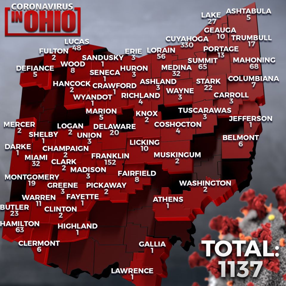 On Friday, it was announced there were 1,137 confirmed cases in Ohio leading to 276 hospitalizations and 19 deaths.