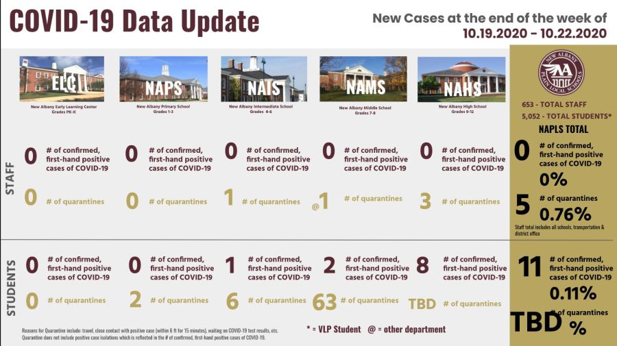 At New Albany Middle School, where 2 positive cases have been confirmed, 63 students are under quarantine.