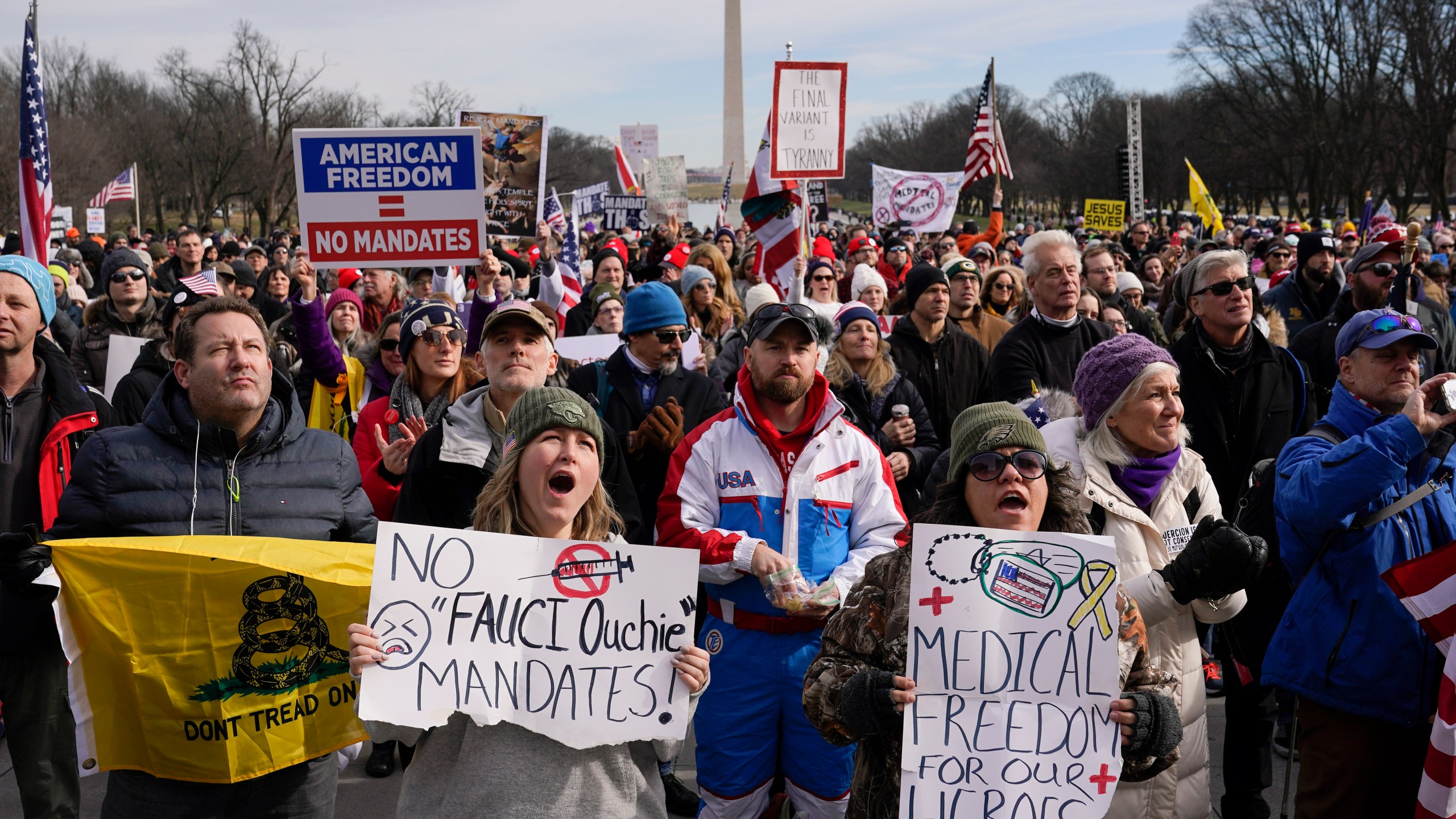 The protest takes place as most of the U.S. is currently experiencing a new wave in COVID-19 cases, fueled by the highly-transmissible omicron variant. According to health data from the Centers for Disease Control and Prevention (CDC), the U.S. currently has a seven-day average of over 716,000 new COVID-19 cases.