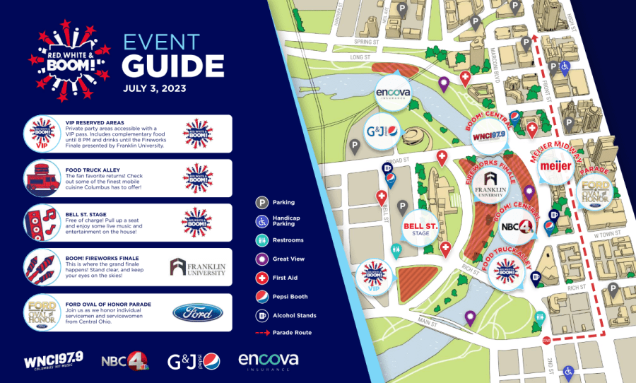 COLUMBUS, Ohio (WCMH) — Several activities and events are scheduled for Red, White & BOOM! on July 3. Some of the activities include live performances, meet-and-greets and more, all leading up to the fireworks show at 10 p.m.