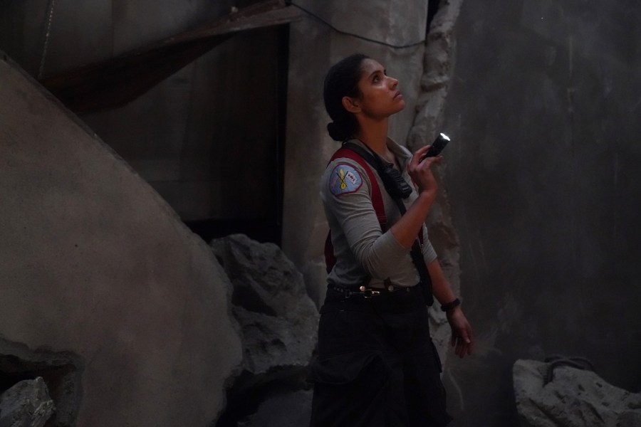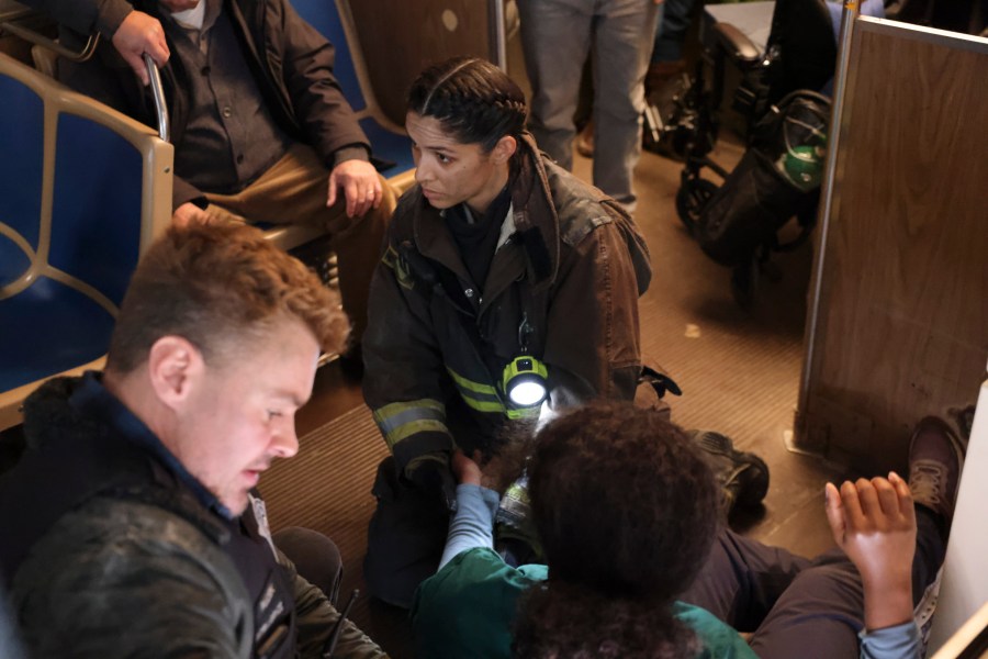 A gas explosion threatens a city government building and the people inside. Meanwhile, a subway tunnel collapses, trapping characters Stella Kidd, played by Miranda Rae Mayo, and Adam Ruzek, played by Patrick Flueger, of “Fire” and “P.D.” respectively.