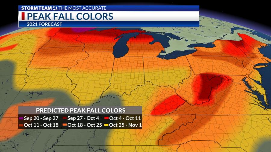 “People might be seeing some spotty patches of trees that are changing. As we move further into fall, we’re going to see that progress. In Northern Ohio, we’re looking at that peak that’s probably going to occur sometime between October 15-October 20. For Southern Ohio, we’re looking at between October 20-25, and then for the Central Ohio region, it’s probably right in between there, so around the 20th is when we’re expecting to see the peak this year.”