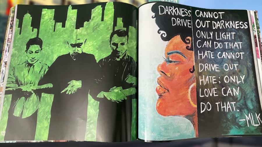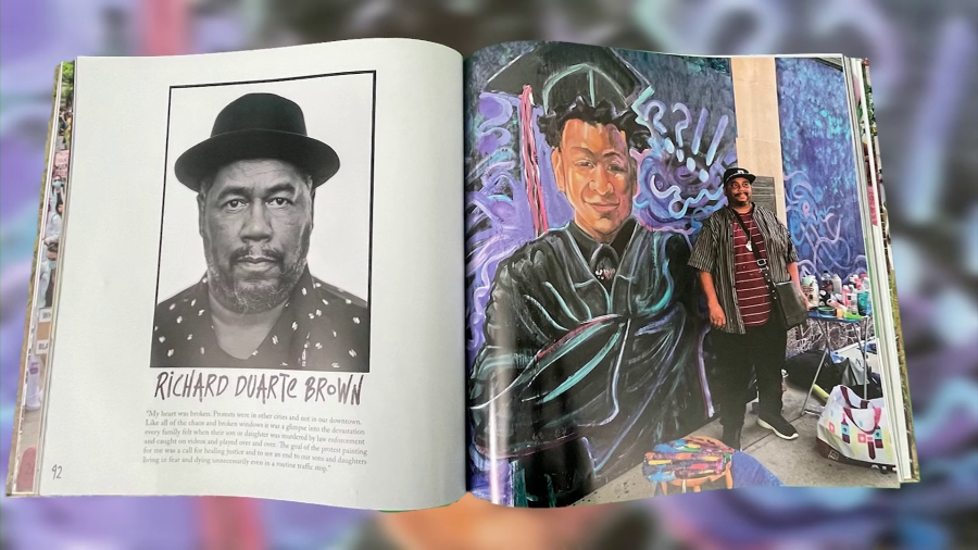 “Art Activism Action” is a collection of visual art, with QR codes throughout the book taking readers to visual and musical performances by artists. The book highlights the work of many local mural artists like Richard Duarte Brown.