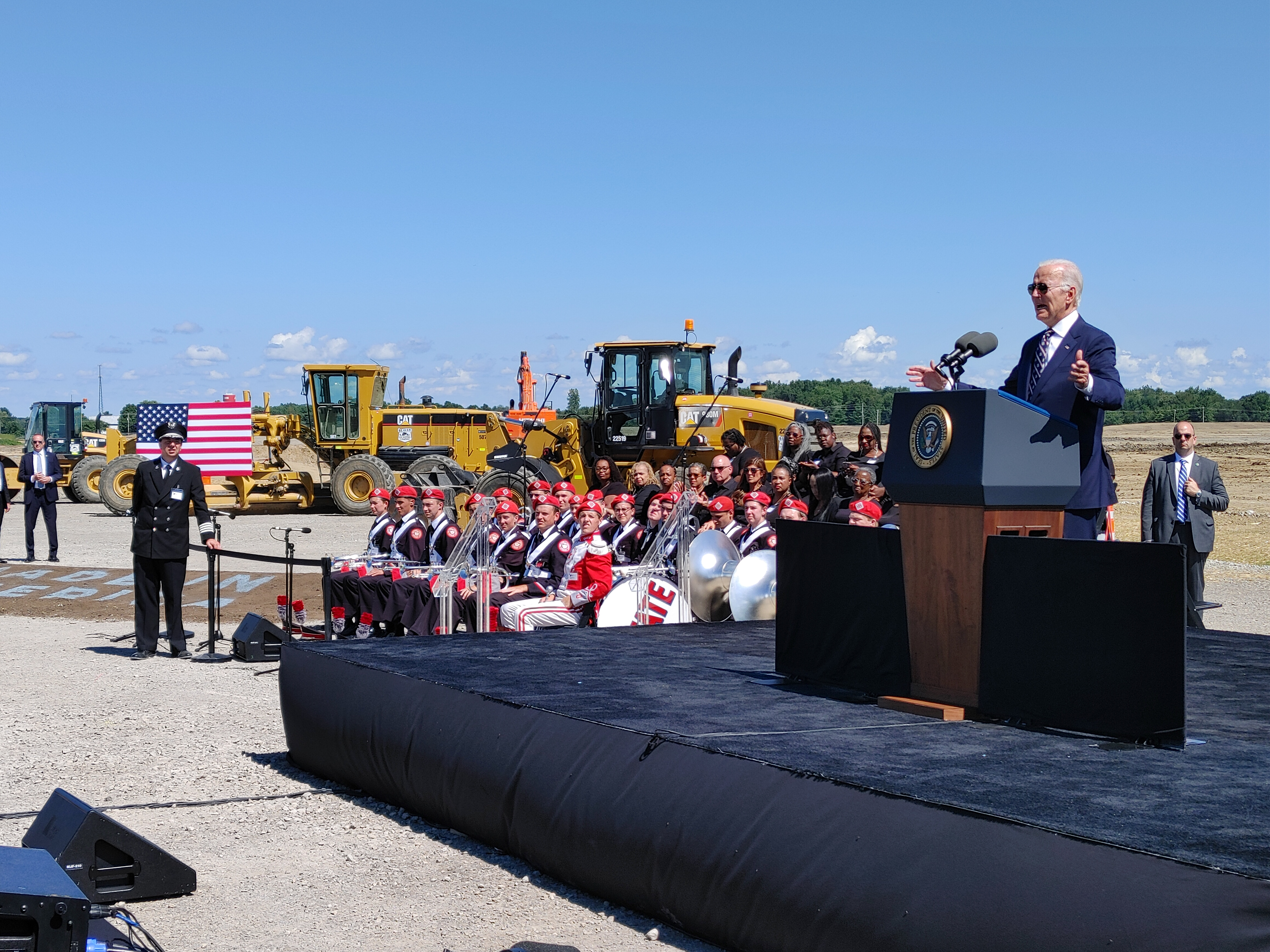 Biden, who arrived in Ohio the same morning via Air Force One, took the stage immediately after the company’s CEO. He responded directly to the CEO’s previous comment, saying the Ohio plant had national implications, and that “Made in America” was no longer just a slogan.