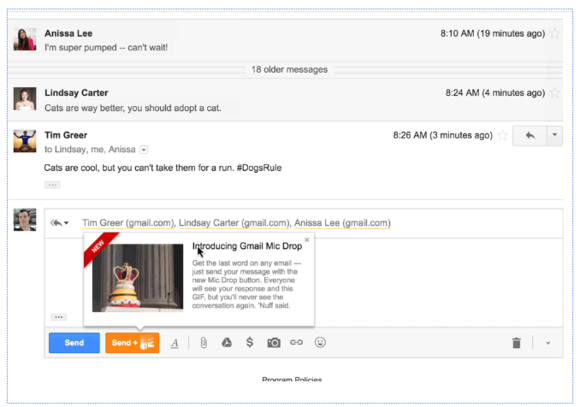 The company added a button to its email service that allowed users to fire out a minion GIF, a character from the animated film “Despicable Me,” which would drop a microphone and then mute responses to whatever email the user had sent.
