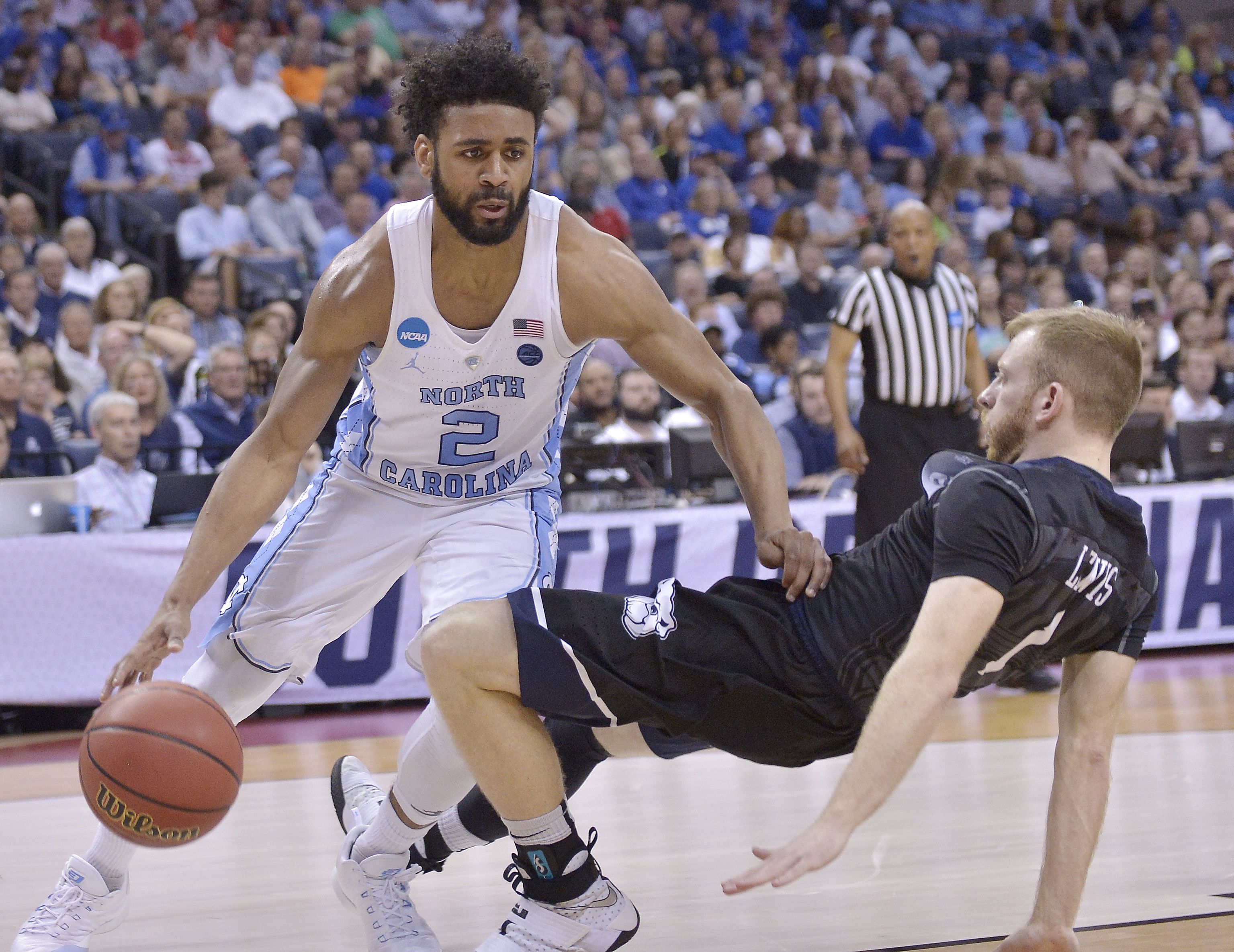 JENKINS ATTENDS: Kris Jenkins, who made the 3-pointer to defeat the Tar Heels in last year’s national championship game, was seated near the Carolina bench. Jenkins was cheering on his brother, senior guard Nate Britt. “Me, him and Nate are in a group chat together. We always laugh and stuff. He’s pretty close to most of us. I mean, he’s here supporting his brother, and we’re kind of like his brothers, too,” forward Kennedy Meeks said.