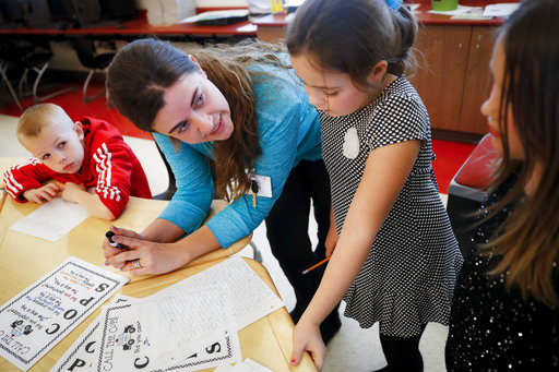 CIRCLEVILLE, OH (AP) – As one group of squealing, chanting students smack a ball into the pavement in a heated game of four square, another finishes an after-school writing lesson inside Circleville Elementary School.