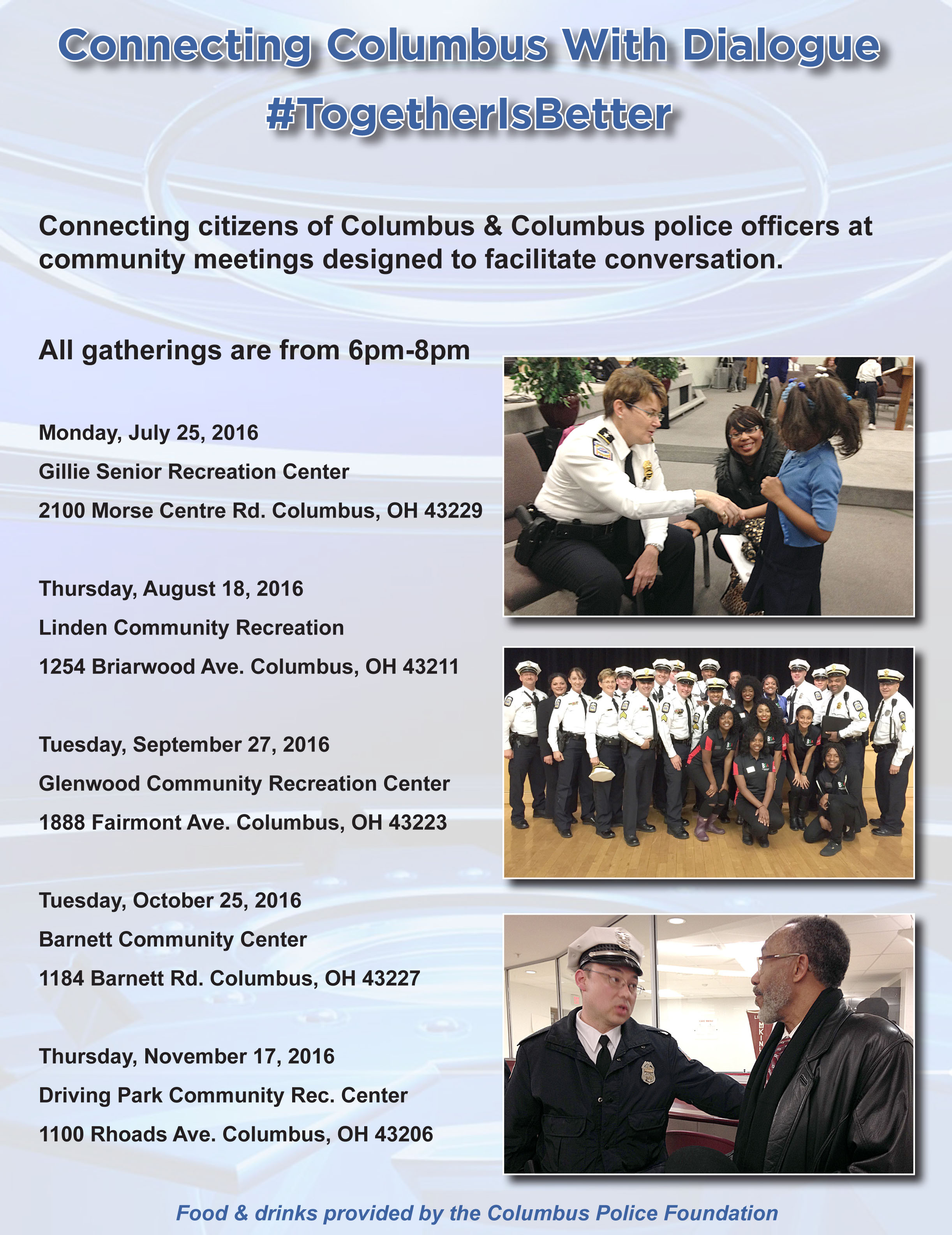 COLUMBUS (WCMH) — The Columbus Division of Police will be hosting five community meetings to discuss how neighborhoods and officers can continue to work together.