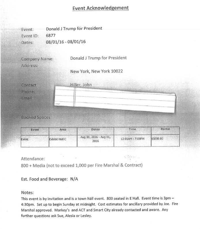 In fact, the campaign was given a $1,500 discount on the room rental fee due to the renovations, according to the contract.Tap here to view the contract in its entirety.