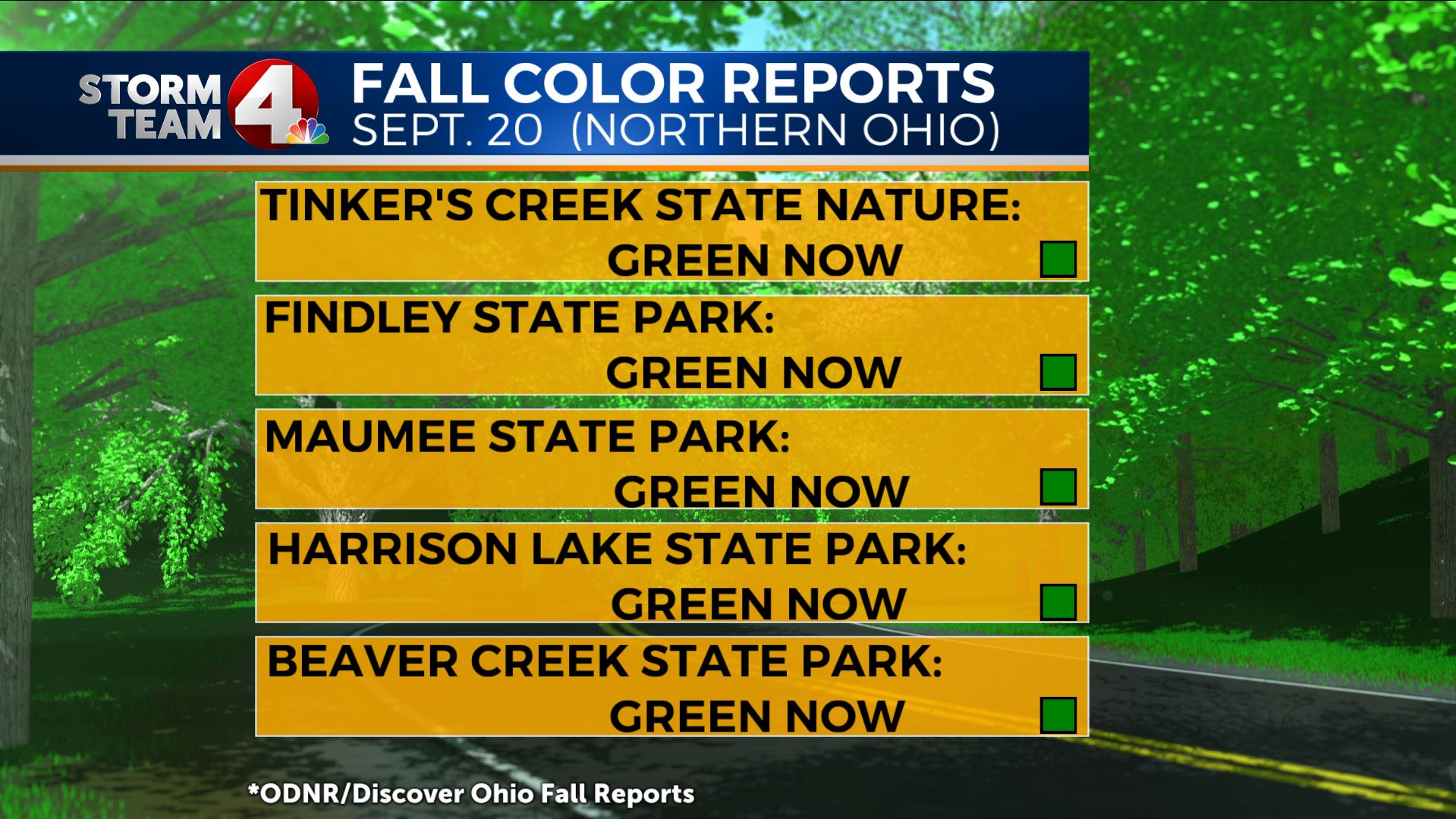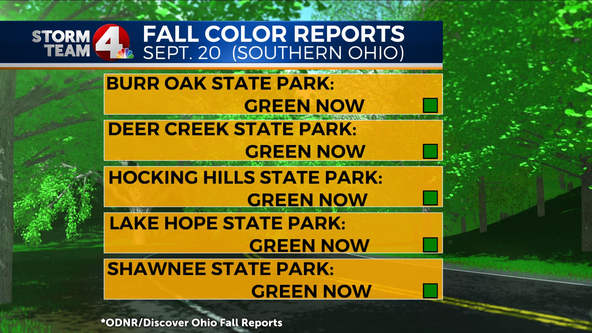 This is what helps to start the color changes in the trees in the fall. Bright, sunny, dry days help keep this process going, and cool evening temps generally in the 40s to upper 30s will keep the colors vibrant and wowing!When do we normally see the peak color changes in Ohio?