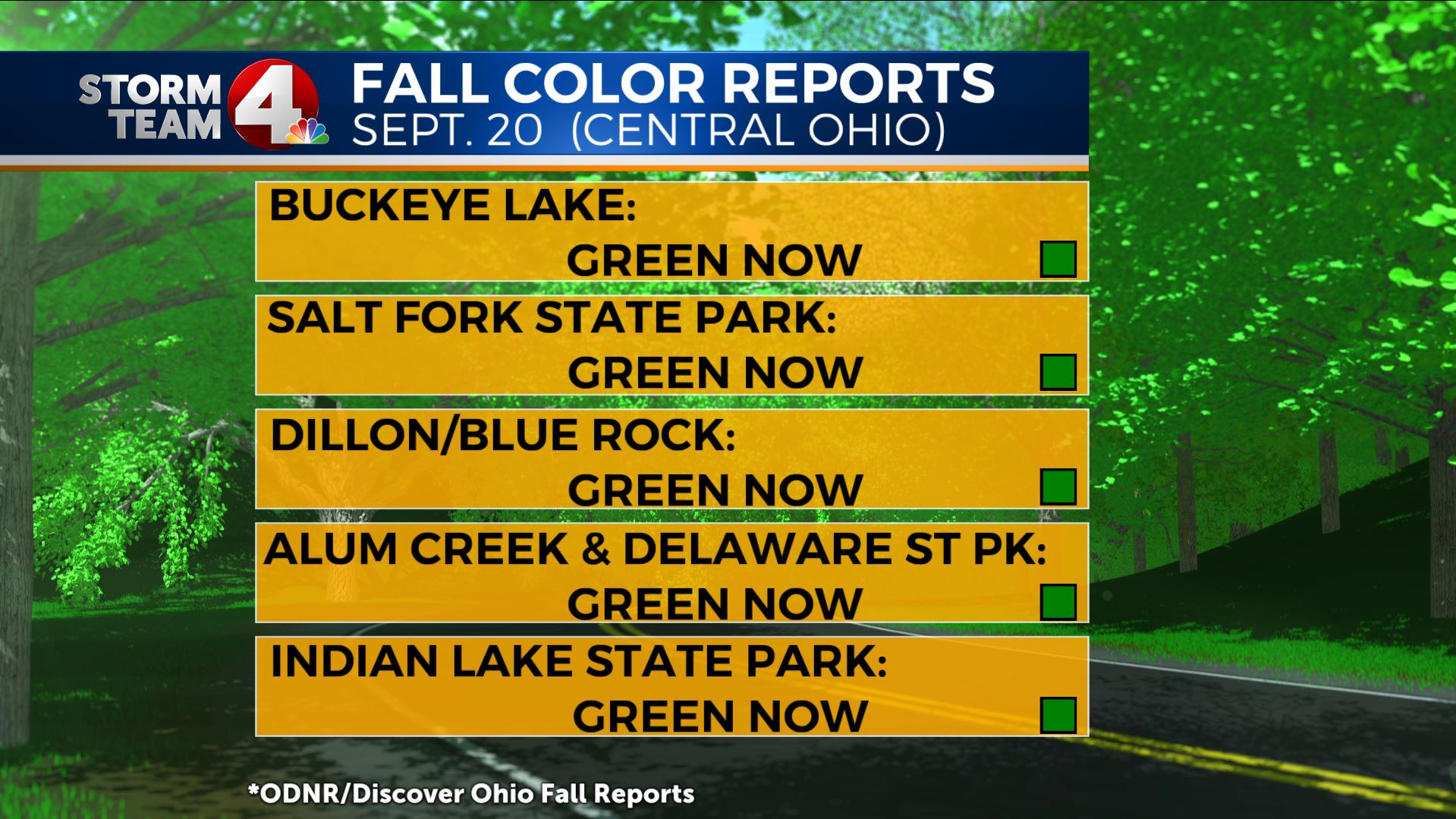 COLUMBUS (WCMH) – About this time every year, I start showing the latest conditions on the color changes here in Ohio. If you have been around the state, you will notice the typical early color changing trees starting to show some gold colors.