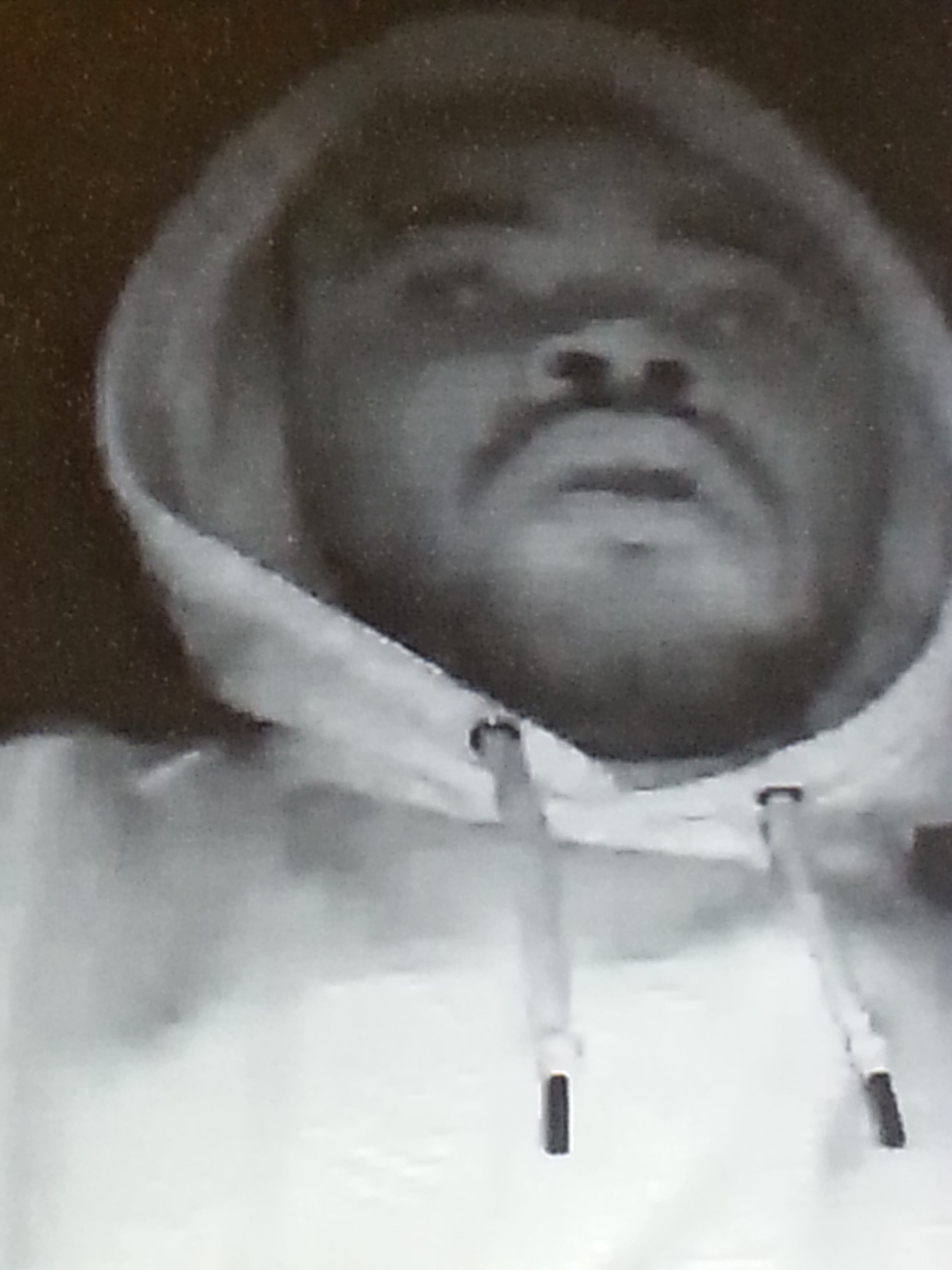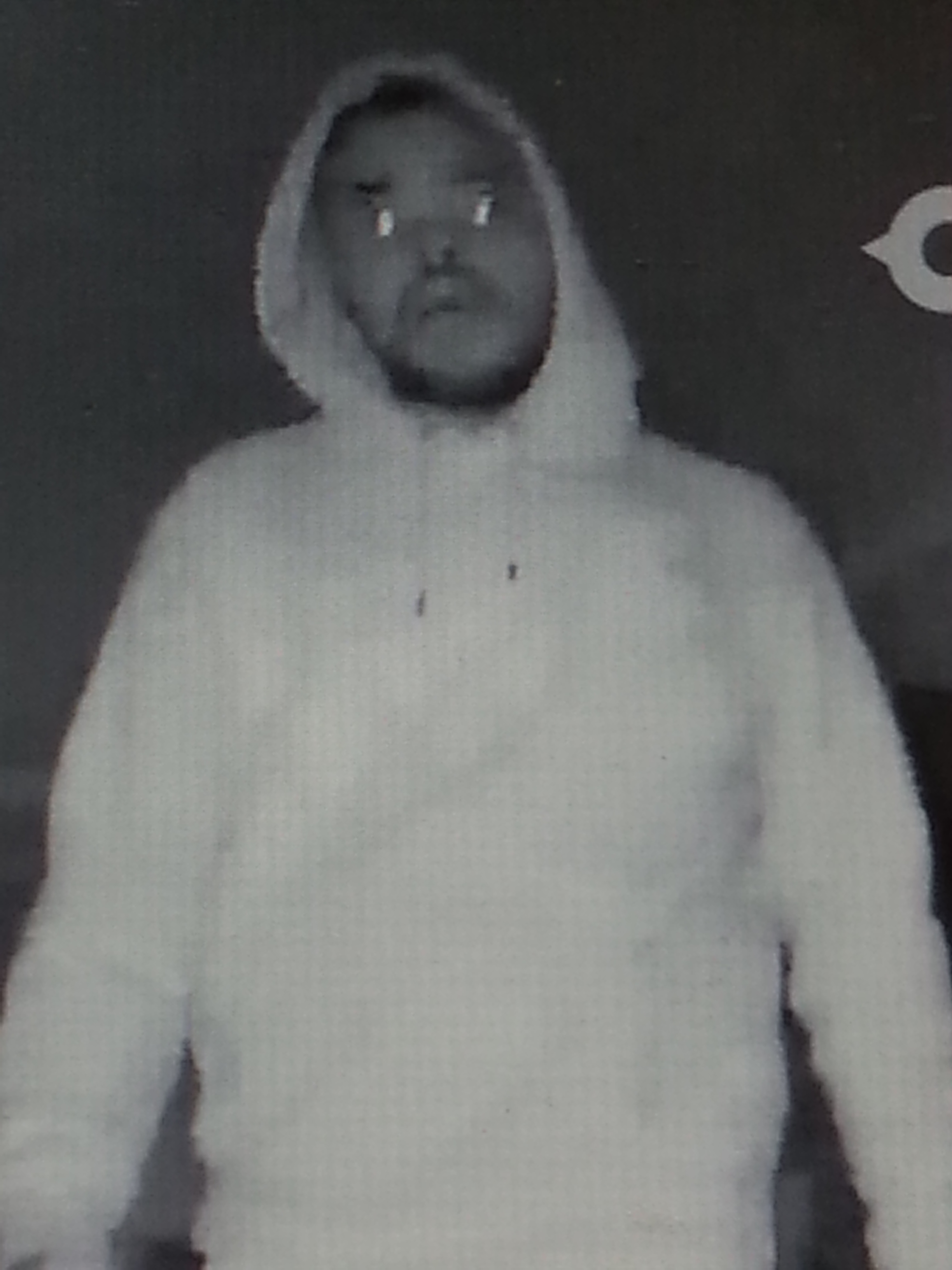 The suspect is described as a black male between 20 and 30 years old with facial hair. He was seen wearing a light-colored hoodie, sweat pants, and Nike tennis shoes. He initially was not wearing gloves, but after his first trip he reentered the home wearing dark gloves on both hands.
