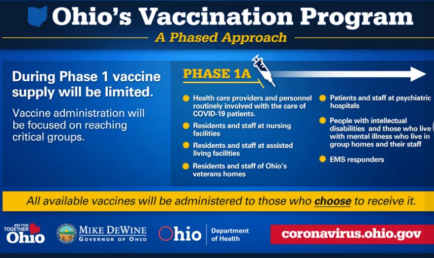 The vaccine will go to people in Phase 1A, with first doses going to Delaware County EMS employees, Delaware Public Health District said on social media.