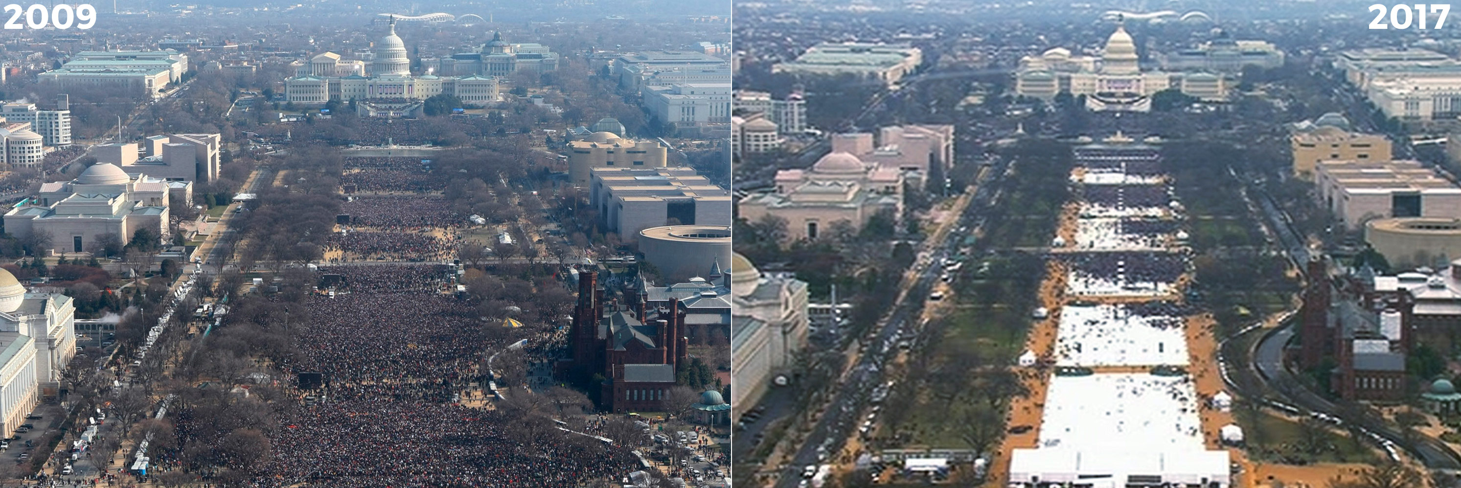 And ridership on the Washington’s Metro system didn’t match that of recent inaugurations. As of 11 a.m. that day, there were 193,000 trips taken, according to the transit service’s Twitter account. At the same hour eight years ago, there had been 513,000 trips. Four years later, there were 317,000 for Obama’s second inauguration.