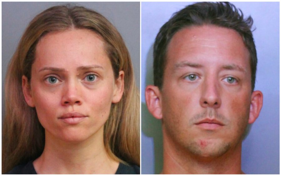 This combination of booking photos provided by the Polk County Sheriff's Office shows Courtney Irby on June 15, 2019, and her husband Joseph Irby on June 14. A Florida lawmaker and others are asking a State Attorney not to prosecute Courtney Irby who was arrested while giving her husband's guns to police after he was charged with trying to run her over. Courtney Irby spent six days in jail on charges of armed burglary and grand theft after she brought the guns from her husband's apartment to the Lakeland Police. Joseph Irby was spending one day in jail at the time, accused of trying to run her over. (Polk County Sheriff's Office via AP)