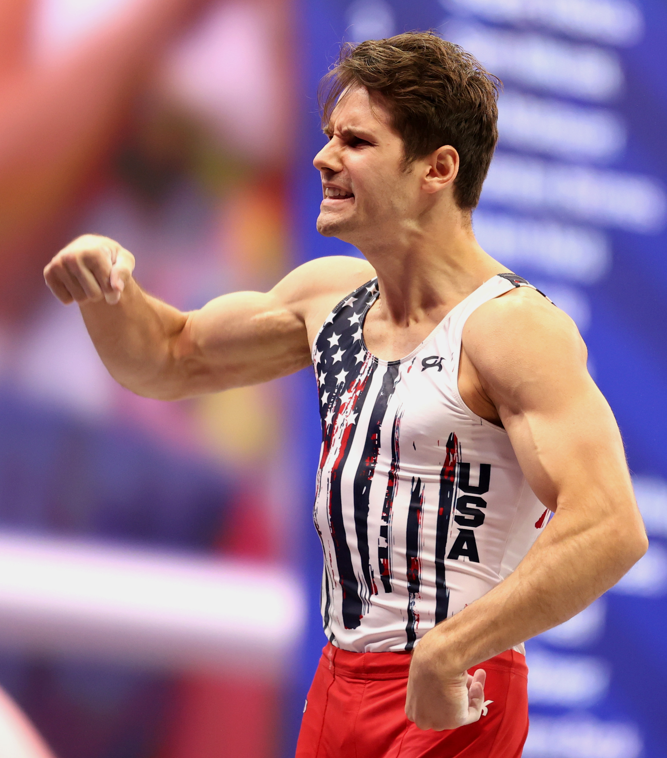 ST LOUIS, MISSOURI – JUNE 24: Alec Yoder reacts after competing on the pommel horse during day 1 of the Men’s 2021 U.S. Olympic Trials at America’s Center on June 24, 2021 in St Louis, Missouri. (Photo by Carmen Mandato/Getty Images)