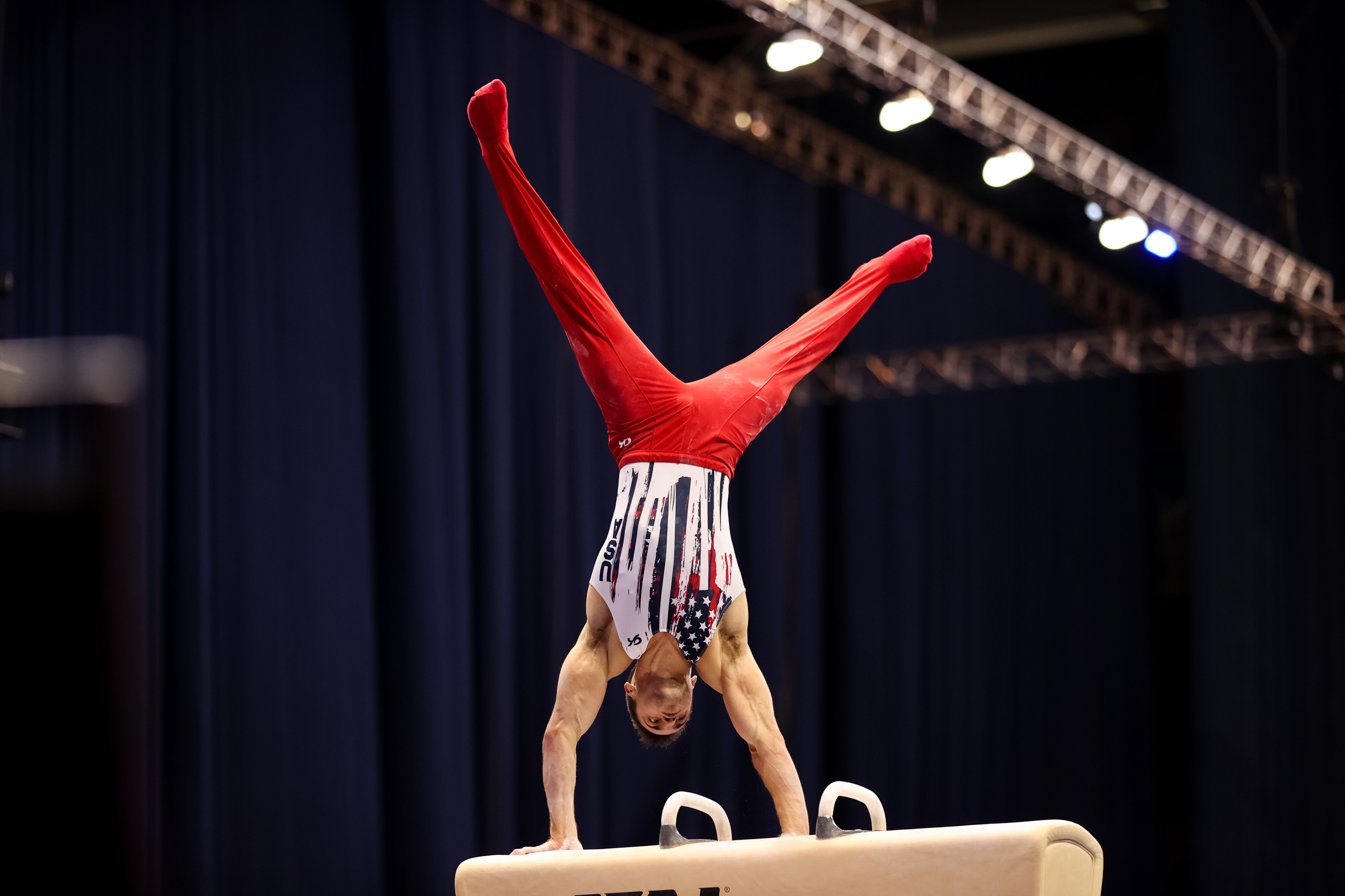 ST LOUIS, MISSOURI – JUNE 26: Alec Yoder competes on pommel horse during the Men’s competition of the 2021 U.S. Gymnastics Olympic Trials at America’s Center on June 26, 2021 in St Louis, Missouri. (Photo by Carmen Mandato/Getty Images)