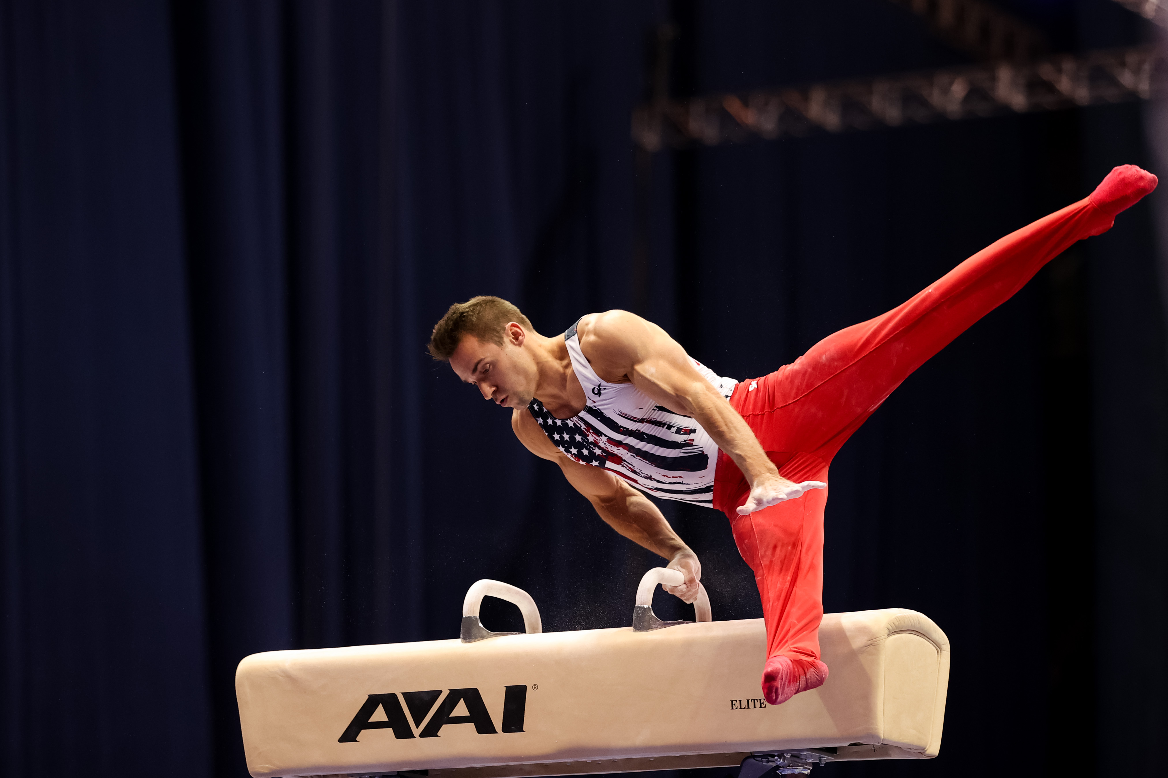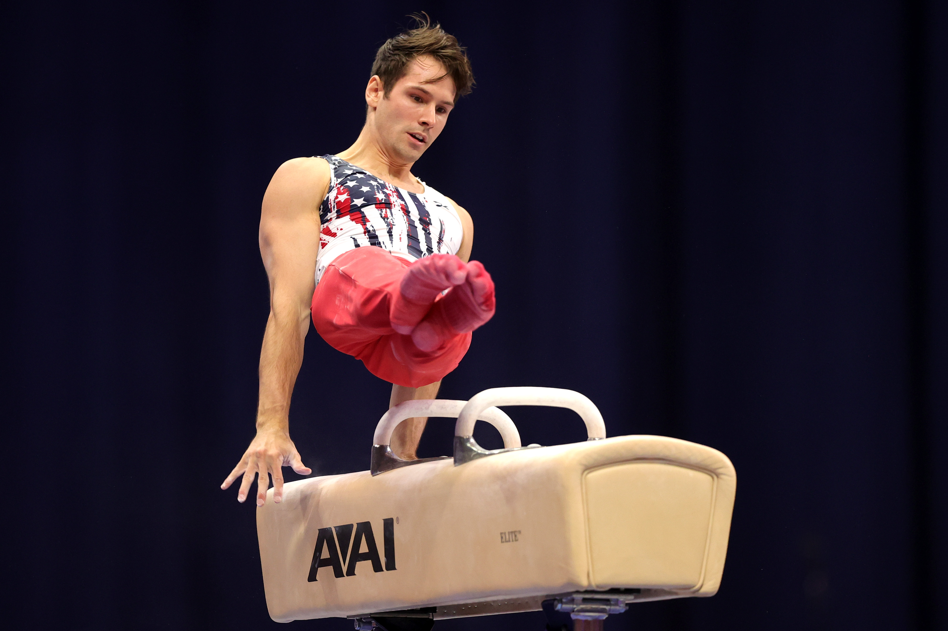ST LOUIS, MISSOURI – JUNE 24: Sam Mikulak competes on the pommel horse during day 1 of the Men’s 2021 U.S. Olympic Trials at America’s Center on June 24, 2021 in St Louis, Missouri. (Photo by Carmen Mandato/Getty Images)
