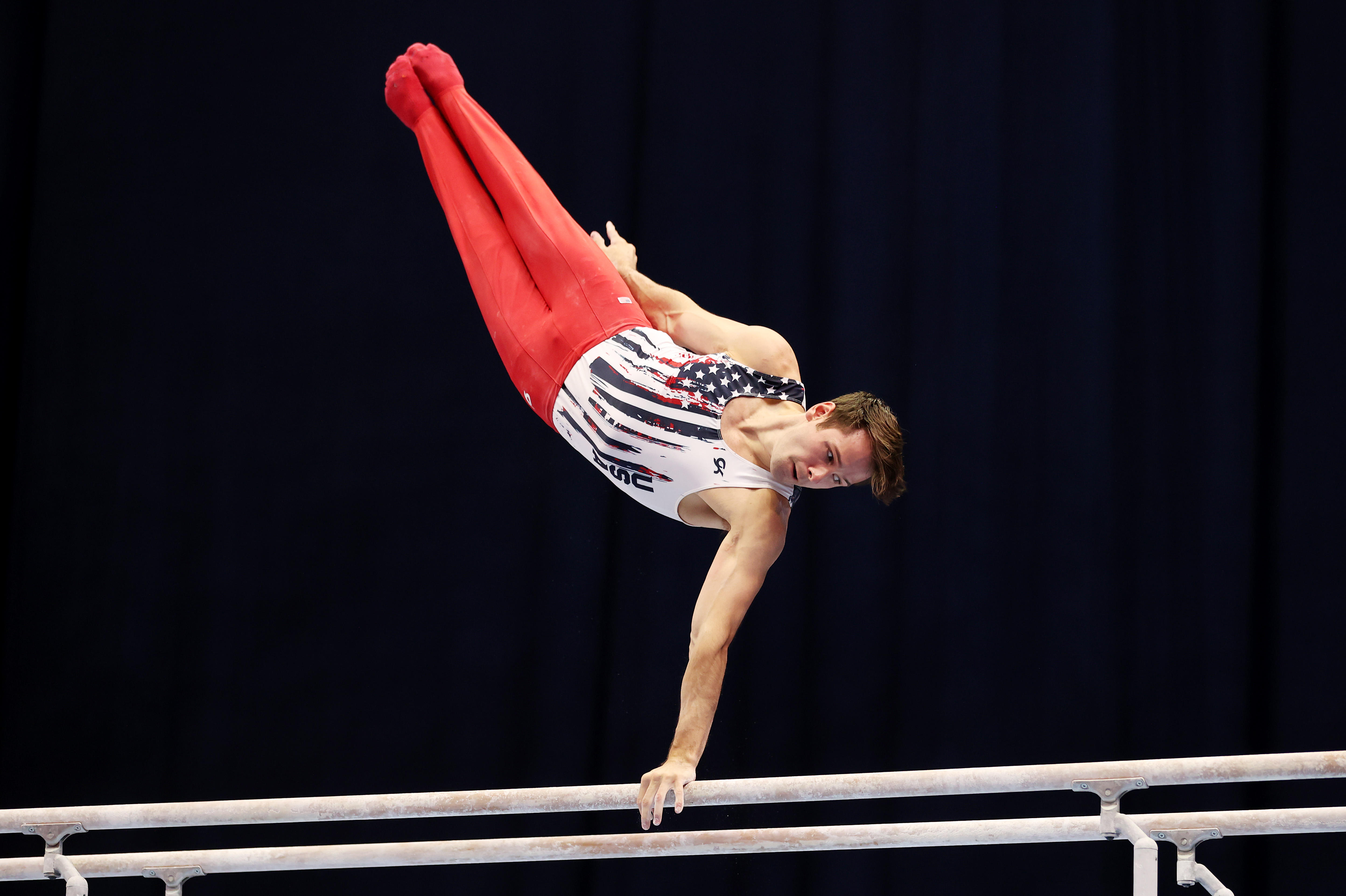 ST LOUIS, MISSOURI – JUNE 26: Alec Yoder competes on parallel bars during the Men’s competition of the 2021 U.S. Gymnastics Olympic Trials at America’s Center on June 26, 2021 in St Louis, Missouri. (Photo by Carmen Mandato/Getty Images)