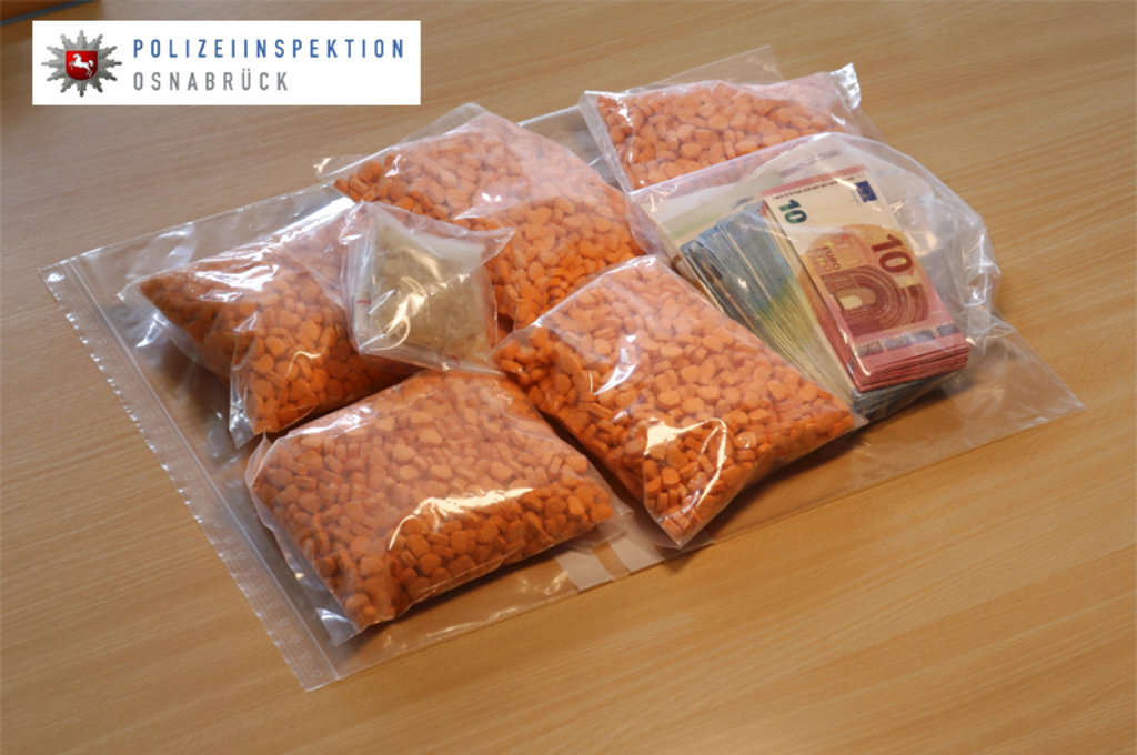 Officers said they found about 5,000 of the orange, Trump-shaped ecstasy tablets along with a large, but unspecified quantity of cash.