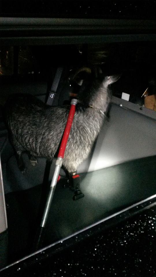 She didn’t travel far; her owner Alan Ergenbright says the 11-year-old pet goat lives just two doors down.