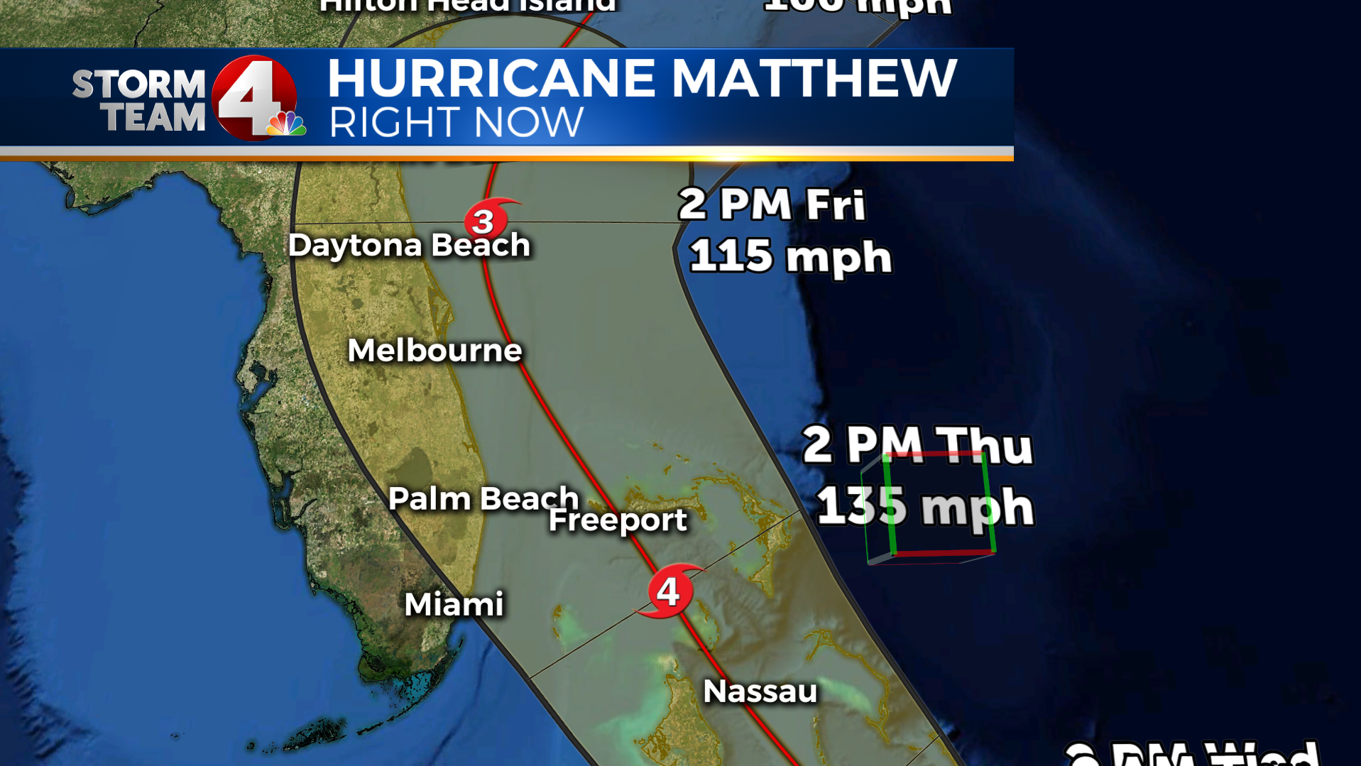 This path will keep Matthew as a very strong Cat 2/3 storm up the Georgia, South Carolina coasts, while weakening to a still strong Cat 1/2 strength storm up the North Carolina/Virginia coasts, and them begins a turn to the east.