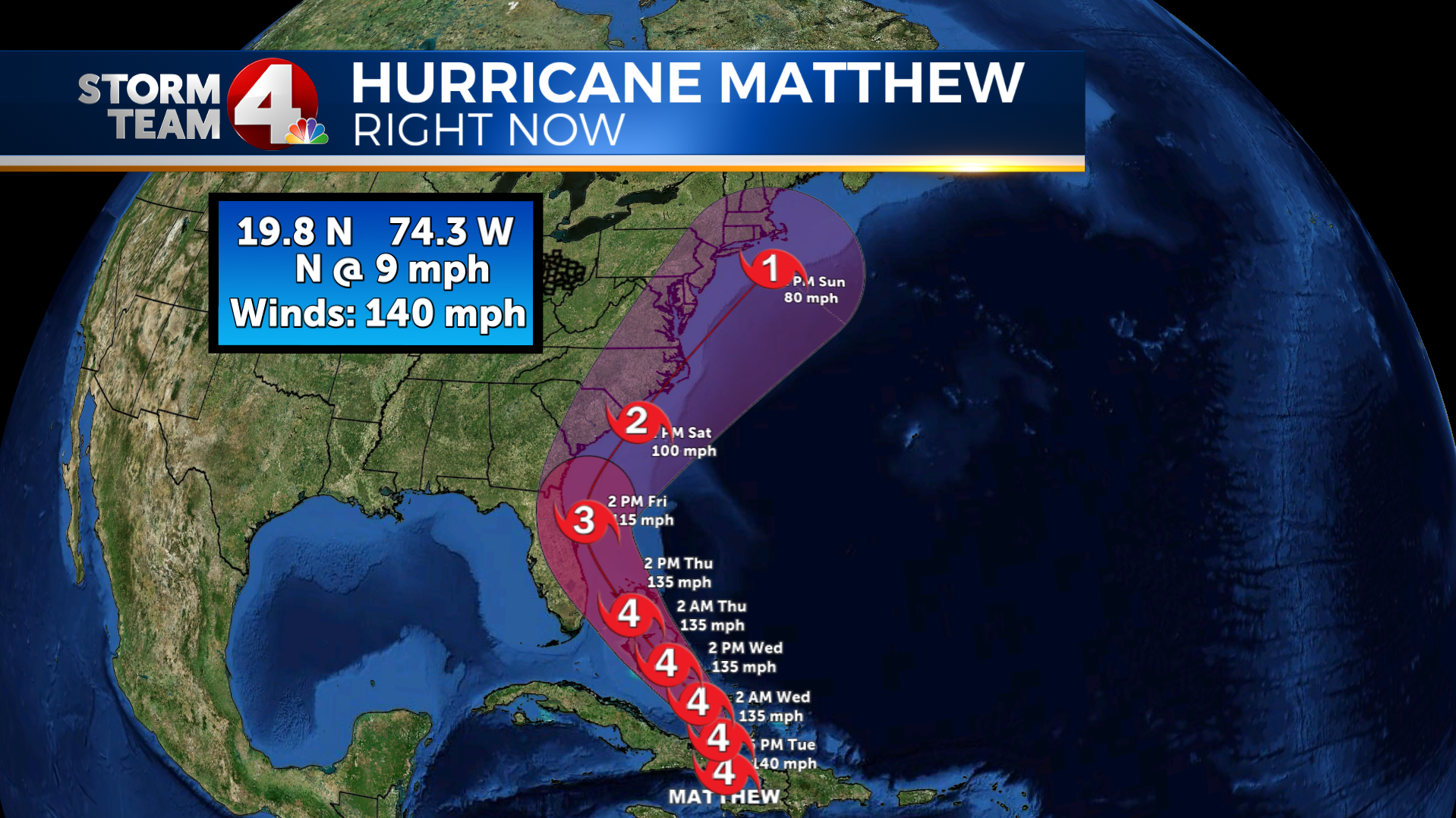 Hurricane Matthew has weakened a bit as it interacted with Haiti and Cuba this evening. This storm is still a strong Cat 4 Hurricane with winds currently at 140mph, with higher wind gusts.Notes on Matthew: