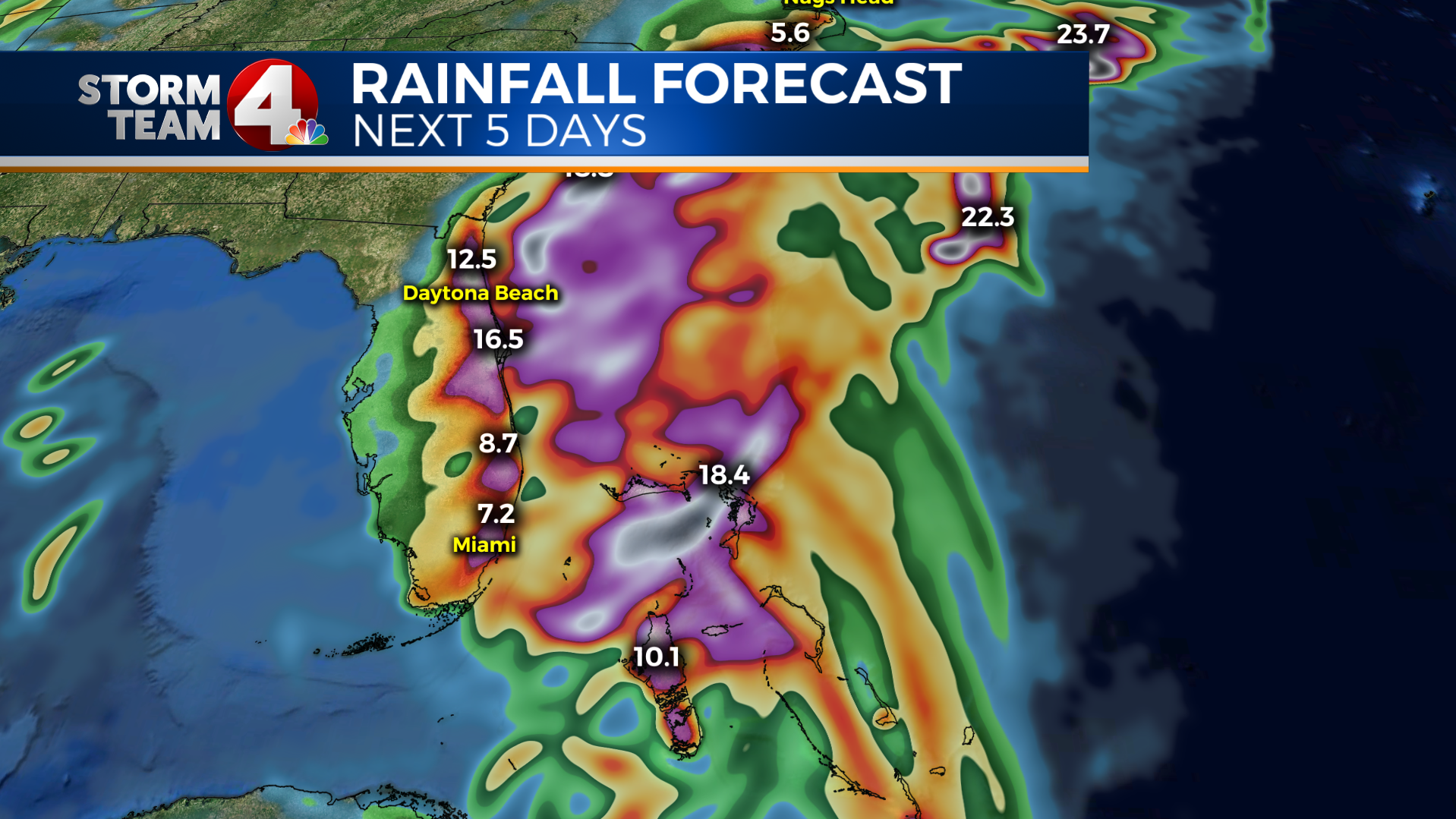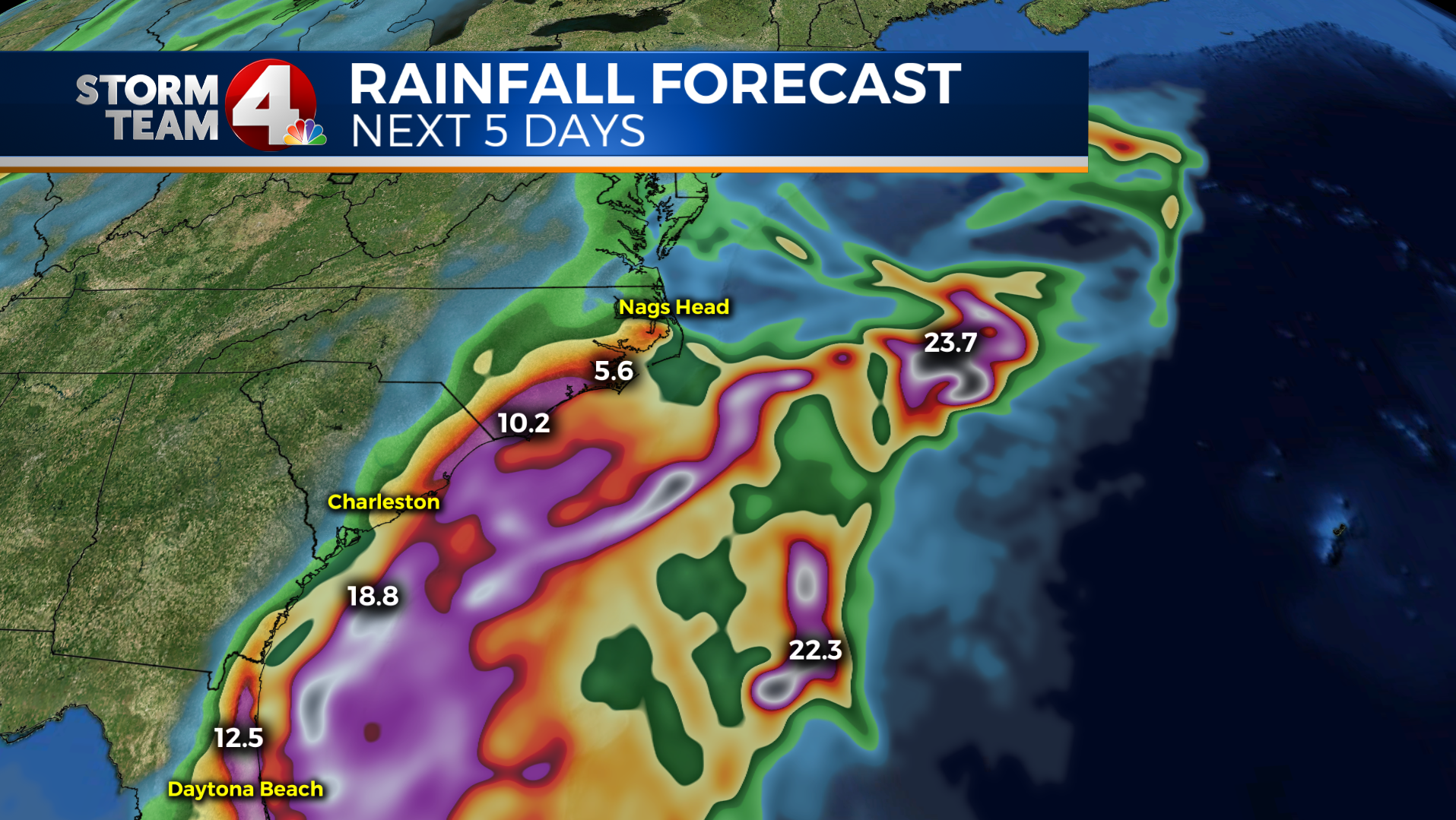 Just like I noted above with the Florida graphic, this storm can still take more of a track to the west. This would significantly weaken the winds over this same area, but would keep incredible rainfall totals possible.As of right now, rainfall will continue to be a major issue up the east coast.