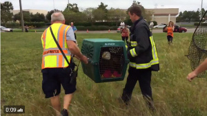 The eagle then hopped off the side of the road, where it later was captured by a wildlife rescue specialist with help from police officers and firefighters.