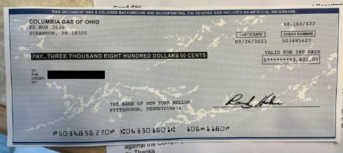 The checks also came with letters, instructing the recipients to deposit the checks at their banks. Then, email back copies of the deposit slips. But in an alert on its website, Columbia Gas of Ohio stated, “these checks are fraudulent, and do not come from us.”