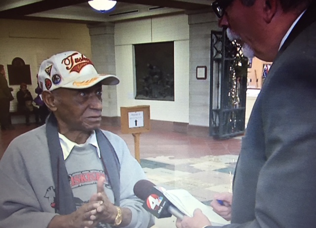 92-year-old Leslie Edwards of Cincinnati, one of the few surviving Tuskegee Airmen, remembers John Glenn’s speech at the dedication of a Tuskegee Airman monument.