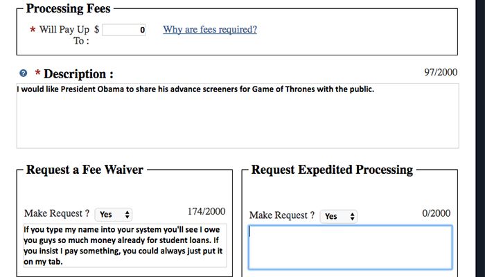 Vanessa Golembewski of Refinery29 filed her request under the Freedom of Information Act. Normally, journalists and other industry people get to see the screeners, but the President is supposedly the only guy outside of HBO who gets to see early episodes.