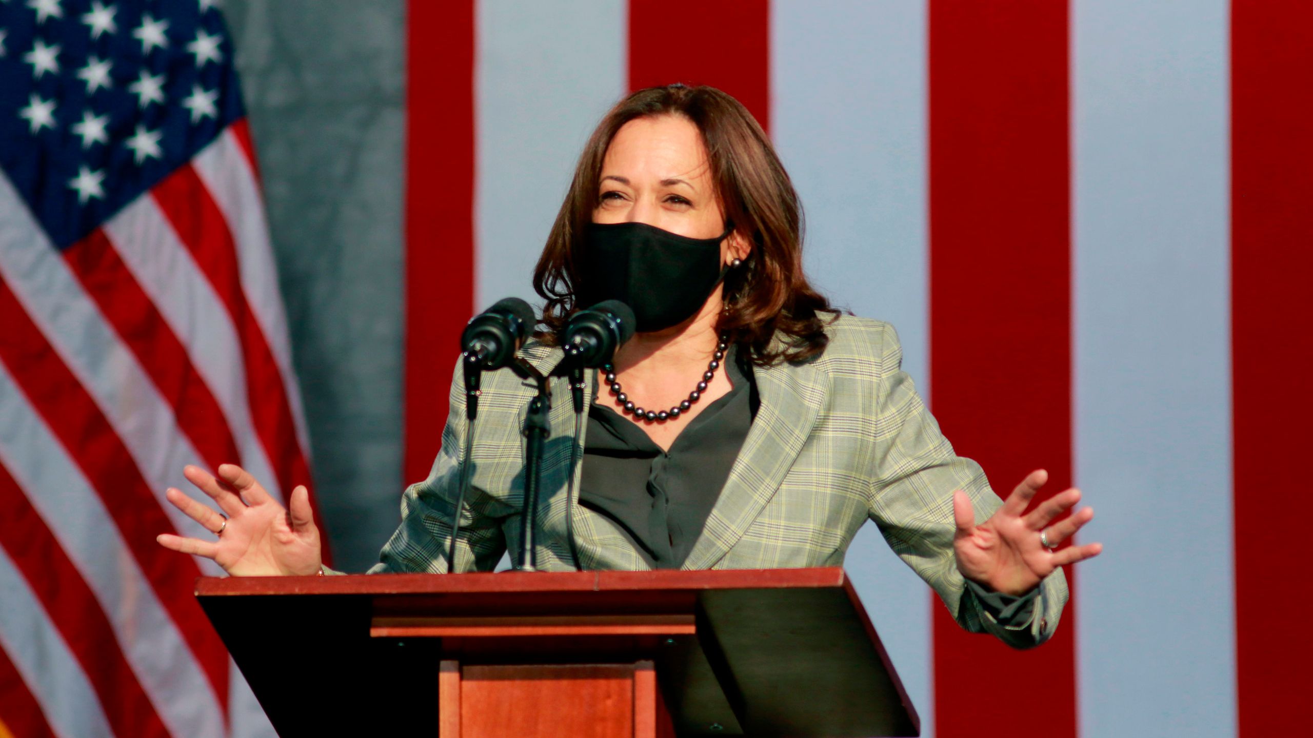 Joe Biden’s Democrat vice-presidential running mate Kamala Harris travelled to Cleveland, Ohio on Saturday to attend a campaign event.