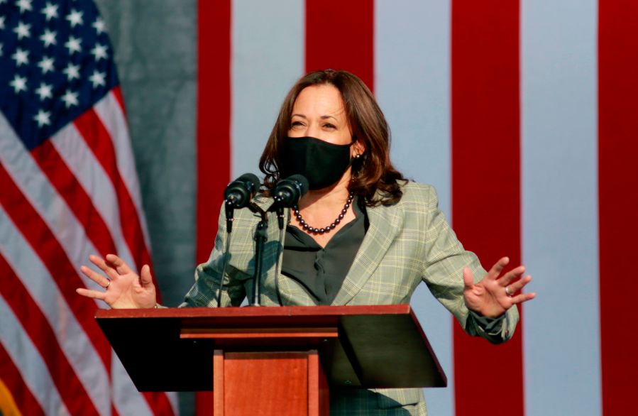 Joe Biden’s Democrat vice-presidential running mate Kamala Harris travelled to Cleveland, Ohio on Saturday to attend a campaign event.