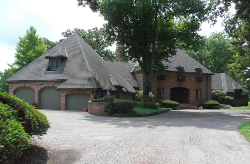 This 4,781-square-foot home was built in 1966 and sits on 140 acres. The brick French-style home features six bedrooms, six bathrooms, a tennis court, a clubhouse, and a barn.