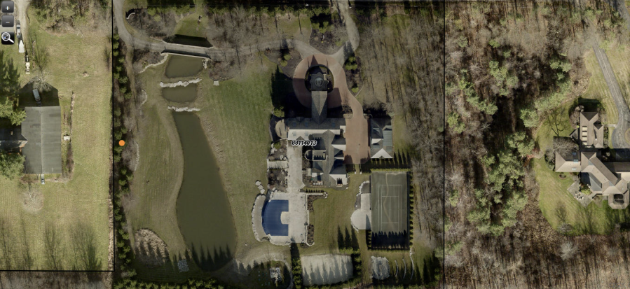 This 17,241-square-foot home was built in 2006 and sits on 5.79 acres. This colonial, Tudor-style home is four stories and includes five bedrooms, eight bathrooms, a 2,800-square-foot fitness center, pool, tennis court, volleyball court, a cigar and tasting room, gaming area, and a 12-seat theater. The property was recently featured in Point2’s list of most expensive homes for sale in the U.S.