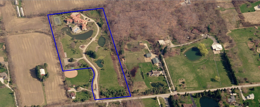 This 12,955-square-foot home was built in 2011 and sits on 1.54 acres. The colonial-style home is nestled on the Lake Erie shoreline and features six bedrooms, eight bathrooms, a wine room, pool and cabana, and a boat house.