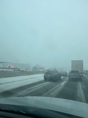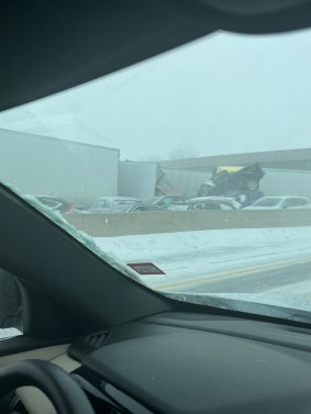 Photos from a driver on the turnpike and the OSHP show dozens of vehicles crashed along the turnpike, including semi-trucks, pickup trucks and cars.