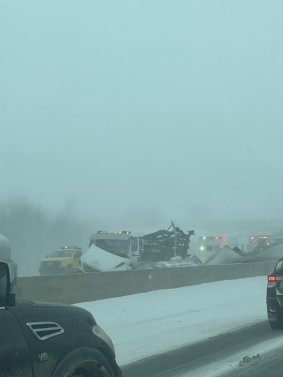 The OSHP responded to calls of a crash at 12:34 p.m. at mile marker 106 going eastbound, OSHP said. So far, 46 vehicles were involved in the crash. OSHP did not yet know how many people were injured but said all parties involved in the crash were transported by bus to a nearby facility to stay warm.