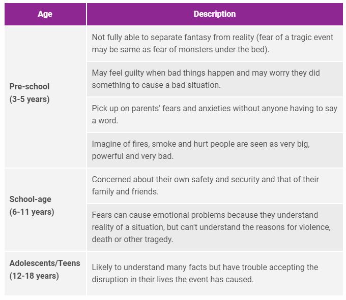 • Help children and teens to express their worries and fears.  Younger children may share their feelings in play and drawings; older children may want to write about their feelings. Toddlers and preschoolers may feel guilty when bad things happen; reassure them that they did not cause what happened.