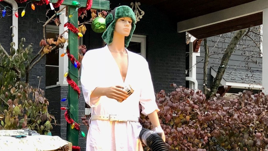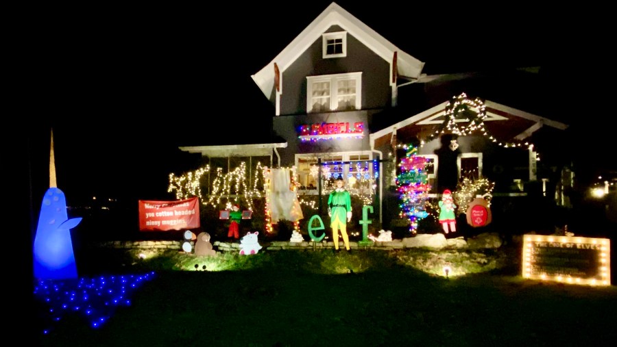 The neighborhood enjoyed his “tacky” display at 270 South Dawson Avenue. Since then, the Pitts have displayed themes from more movies: A Christmas Story, Home Alone, and this year Elf.