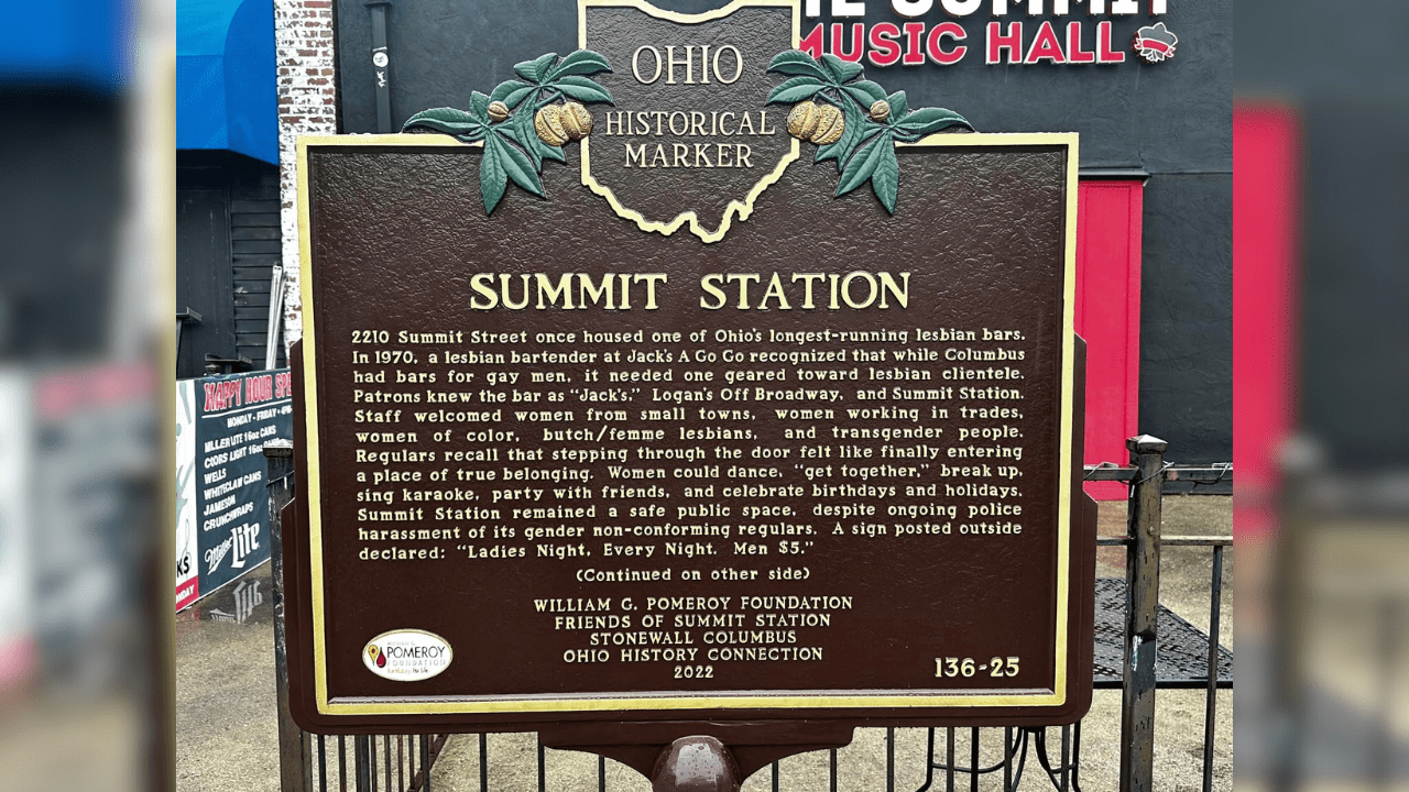 Research efforts to place a marker where Ohio’s first and longest-running lesbian bar once stood served as the prototype for Marking Diverse Ohio, Ohio History Connection’s site states. The sign was installed in June 2023, honoring Summit Station in Columbus’ University District as one of the first lesbian pubs in the nation that welcomed patrons for nearly four decades before closing in 2008.