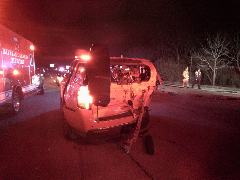 The Ford and fire department vehicle were towed due to extensive damage. The police cruiser sustained minor damage. I-270 southbound lanes were closed for a brief period after the crash.