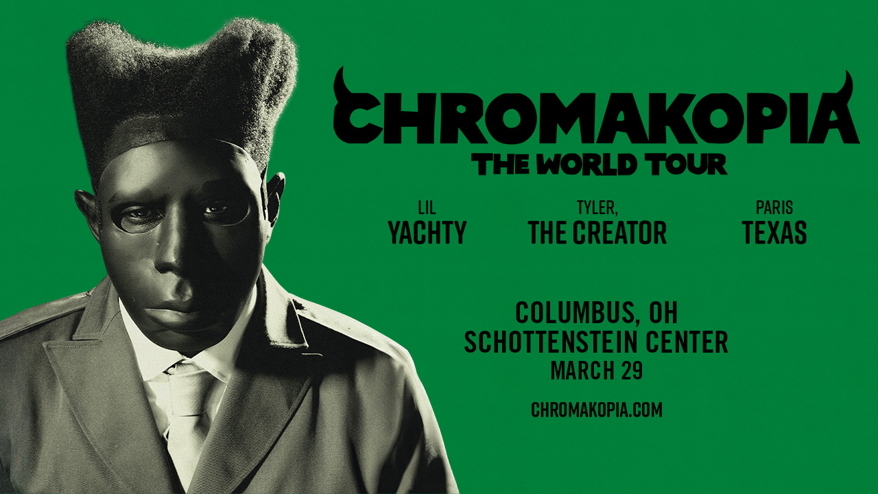 - Rapper, producer and singer Tyler, The Creator is coming to Columbus to perform on his tour called CHROMAKOPIA. This comes after the rapper’s new album was released in October 2024. He will be joined with Special Guests Lil Yachty and Paris Texas. According to the musician’s website, there is a waitlist for tickets to the Columbus concert.