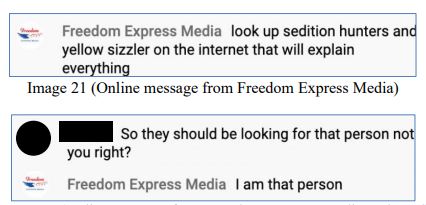 Evidence connecting Valentine to images captured at the Capitol include a Facebook photo of Valentine, which shows him wearing identical clothing to those he wore on Jan. 6. Also, evidence of a phone number that was identified as being in the geographical area of the Capitol building matches a number that is registered to Valentine. And lastly, Valentine, associated with an account known as “Freedom Express Media”, posted an admission using the moniker “yellow sizzler” as being present at the Capitol breach.
